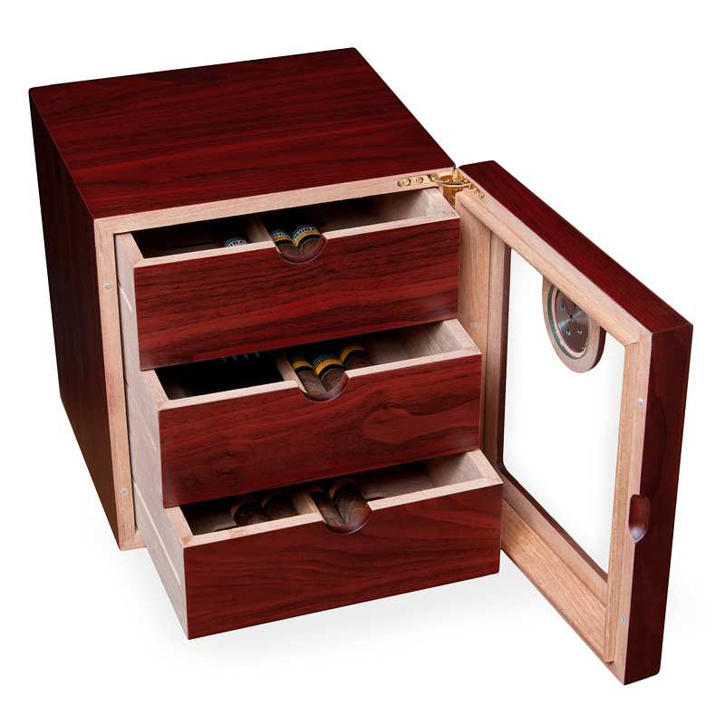 Хьюмидор имеет 3 отдельных выдвижных ящика для хранения.