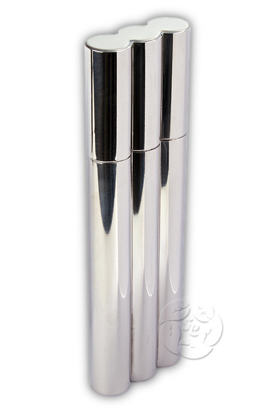 Полированная металлическая туба с круглой встроенной фляжкой на две сигары формата Churchill или Double Corona.
