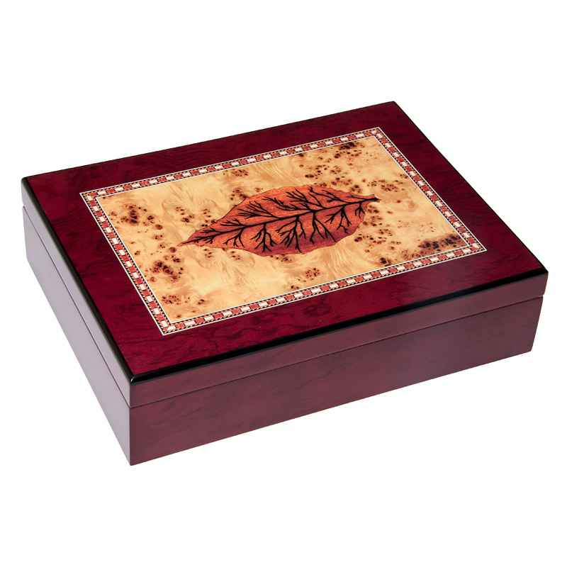 Изготовлен из натурального дерева. Хьюмидор содержит увлажнитель, благодаря которому в хьюмидоре поддерживается необходимый уровень влажности, при которой должны храниться сигары, чтобы сохранить в сигаре ее аромат и предотвратить процесс естественного разрушения ее покрова.