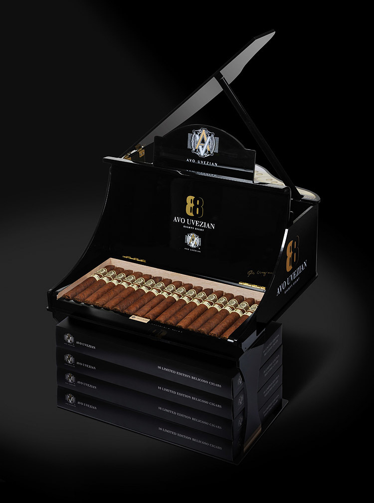 Этот выпуск сигар AVO Limited Edition 2014 буквально пропитан музыкой и числами: 88 лет, 88 клавиш на рояле и 8888 коробок сигар  выпущено, и каждая из них несет на себе уникальный номер. Каждая коробка, подобно роялю, выкрашена в глубокий черный цвет и покрыта лаком. 888 коробок сигар из этого выпуска подписаны Аво Увезяном.