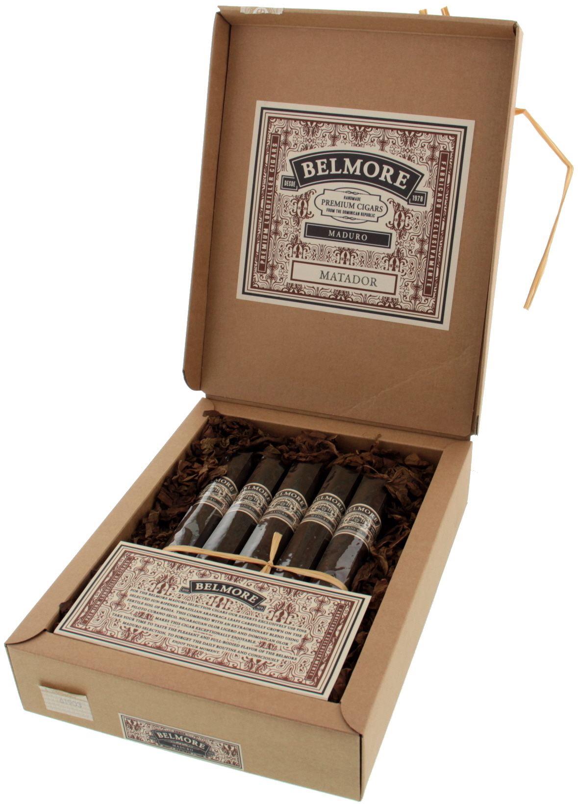 В испанском языке слово “Maduro“ означает зрелый. Двойная ферментация покровного листа сигар Белморе с Красной печатью придаёт им типичный, интенсивный и сладкий аромат, который делает сигары полностью неповторимыми в своем роде. Сочетание шелковистого вида покровного листа Brazil Maduro, Доминиканского подлиста Olor и наполнителей из Никарагуа Viso и Доминиканского Piloto Cubano Seco идеально согласовано и обеспечивает сигарам насыщенный вкус и неповторимый аромат. Линейка сигар Белморе Мадуро особенно подходит для ценителей насыщенного вкуса, которые ценят средне-сильный вкус этой сигары.