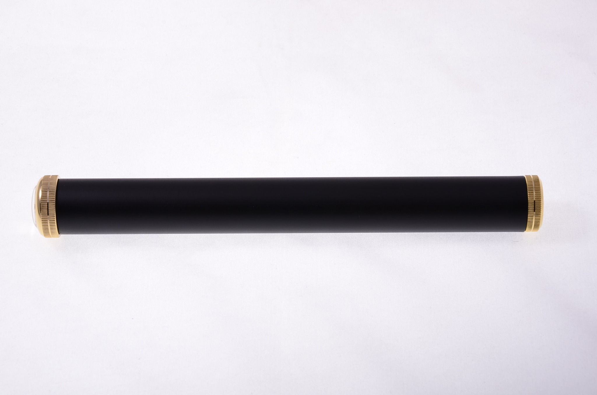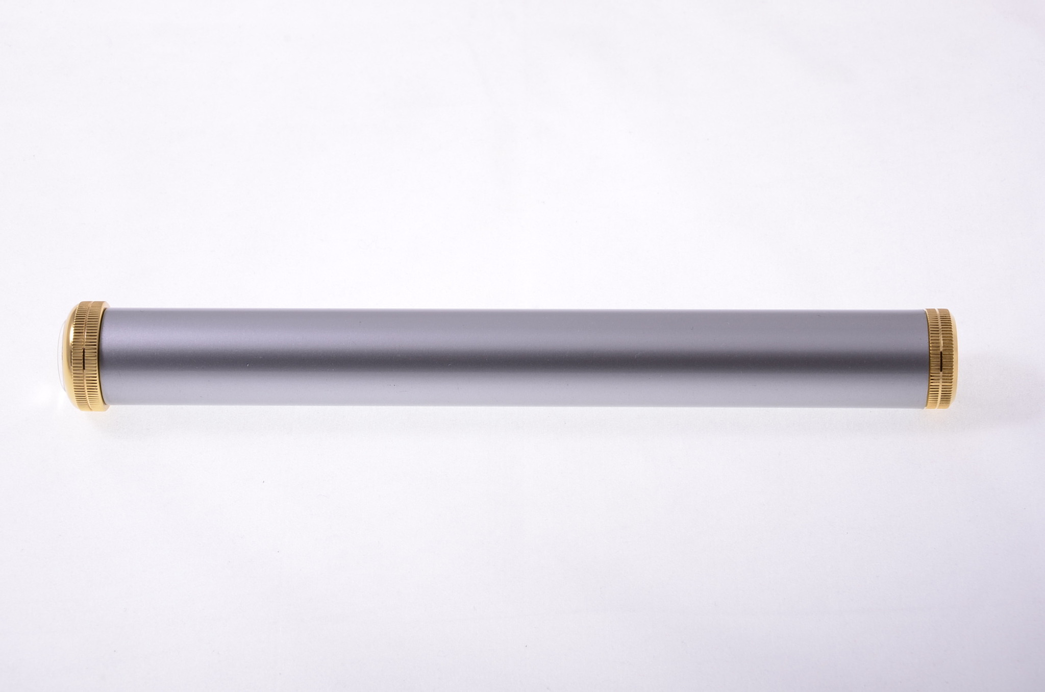 Чехол сигарный- хьюмидор тайваньской марки Tom River из алюминия с латунными увлажнителем и гигрометром на противоположных торцах. Вмещает в себя 1 сигару длиной до 17 см и диаметром до 1,8 см (ring gage 45) формата Корона Гранде.