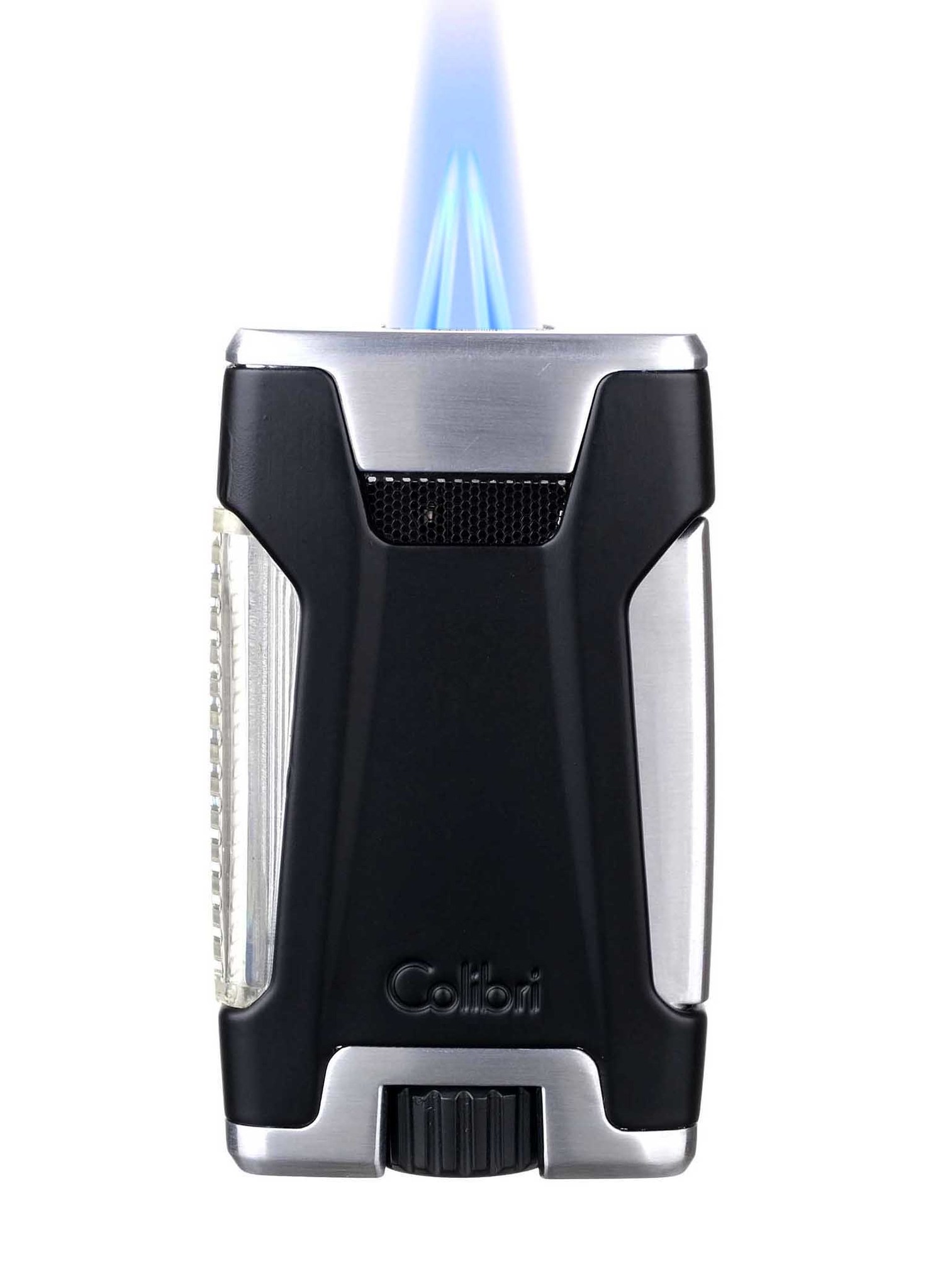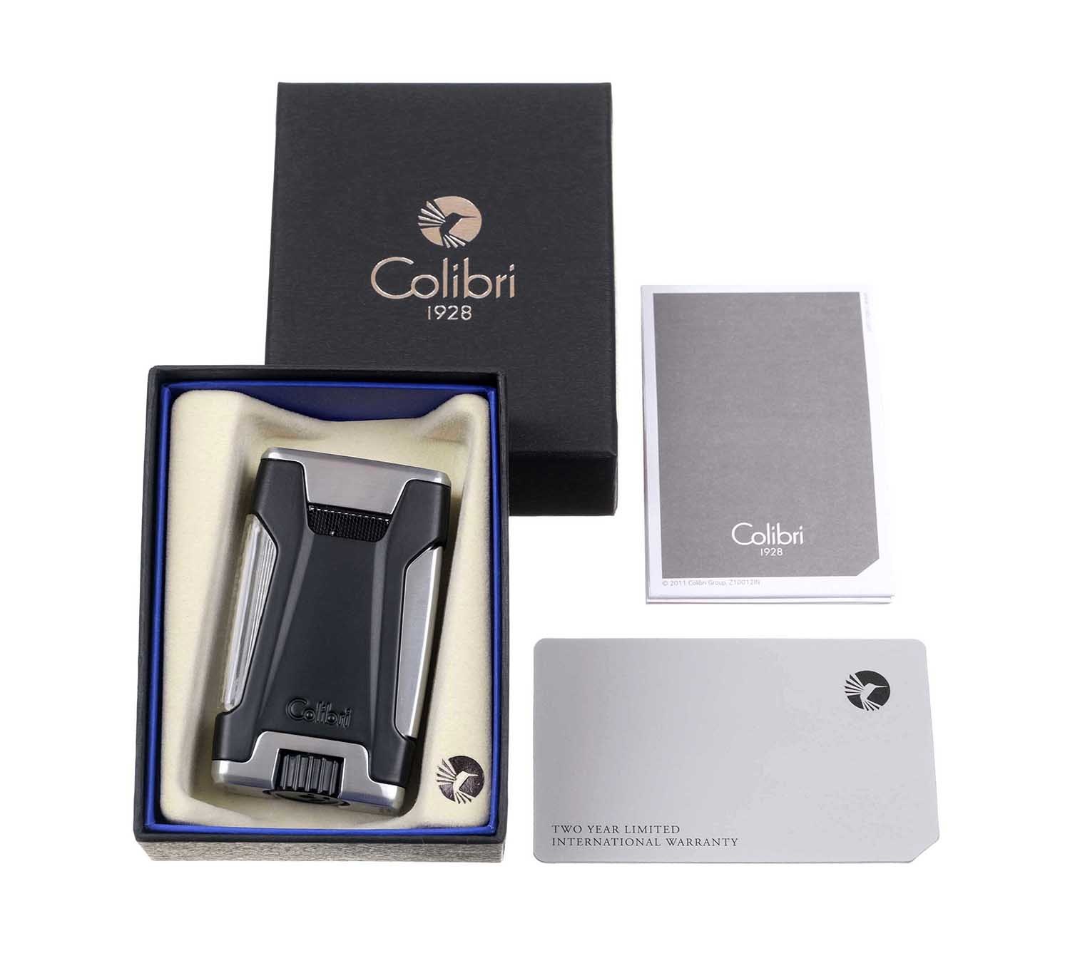 По другую сторону расположено топливное окно, которое при заправке окрашивается в синий цвет для моментального считывания уровня заправки газом. Массивный, но эргономичный корпус с увеличенным объемом газового бачка удобно лежит в руке и покрыт черной матовой эмалью. Двухструйное ветроустойчивое пламя. Большой и удобный регулятор высоты пламени. Надежная уверенная работа механизма гарантирована испытаниями на высотах до 3000 метров. Зажигание одним нажатием. В комплекте подарочная коробка, мультиязычная инструкция по эксплуатации и карточка международной двухгодичной гарантии компании Colibri на данное изделие.