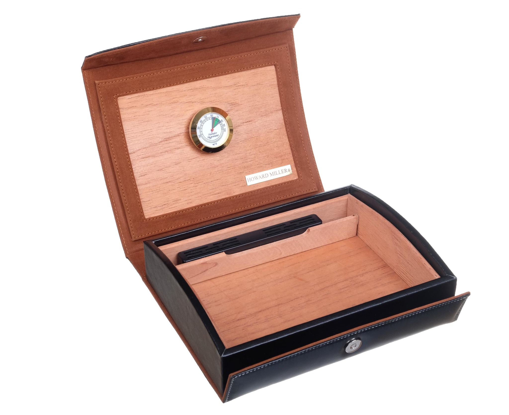 Хьюмидор на 8-10 сигар от американской компании Howard Miller — известного производителя предметов интерьера. Внутренняя отделка выполнена из испанского кедра, снаружи — экокожа. В комплекте с хьюмидором Howard Miller идут увлажнитель, стрелочный гигрометр, перегородка из кедра, подробная инструкция по эксплуатации. Тканевый чехол и подарочная коробка.