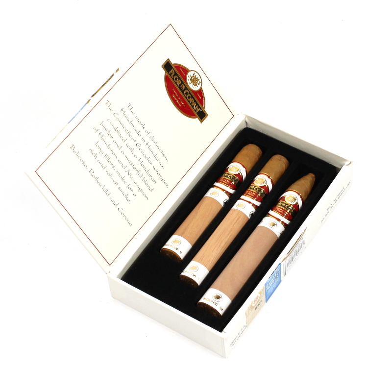 Это красивый набор по приемлемой цене. Состоит из трёх сигар Flor de Copan формата Belicoso, Corona и Robusto.
