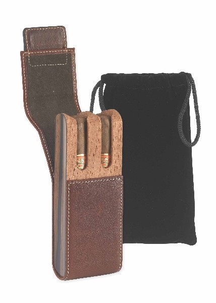 Кожаный высококачественный футляр для 2-х сигар формата Robusto с логотипом Bugatti