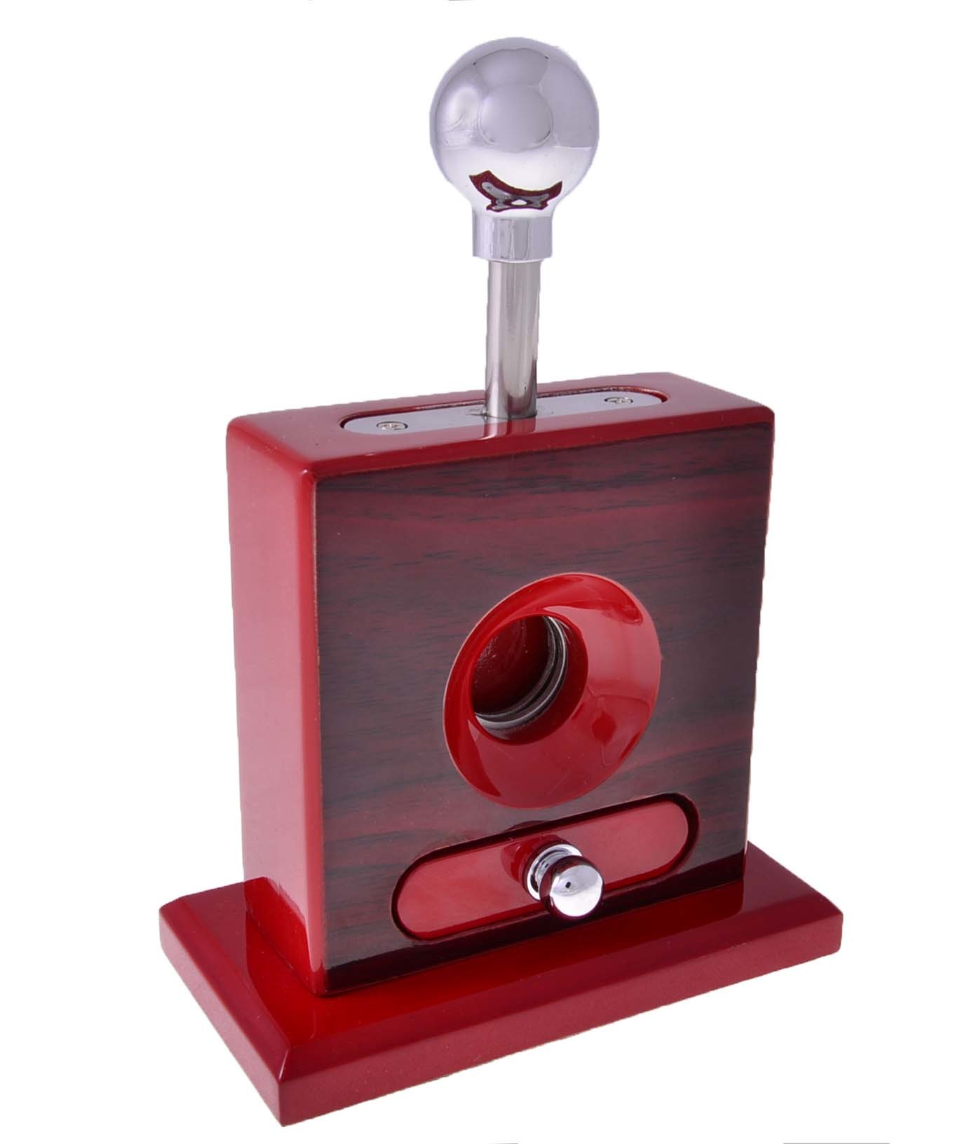 Настольная сигарная гильотина от тайваньской компании Tom River. Деревянный корпус, покрытый шпоном и лаком. Прекрасный сигарный аксессуар, который может быть как самостоятельным предметом интерьера, так и гармоничным дополнением к хьюмидору и/или настольной пепельнице.