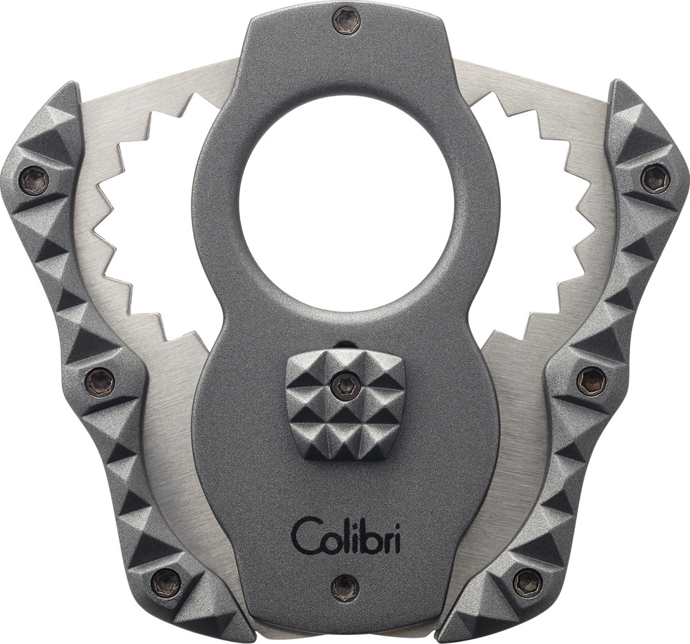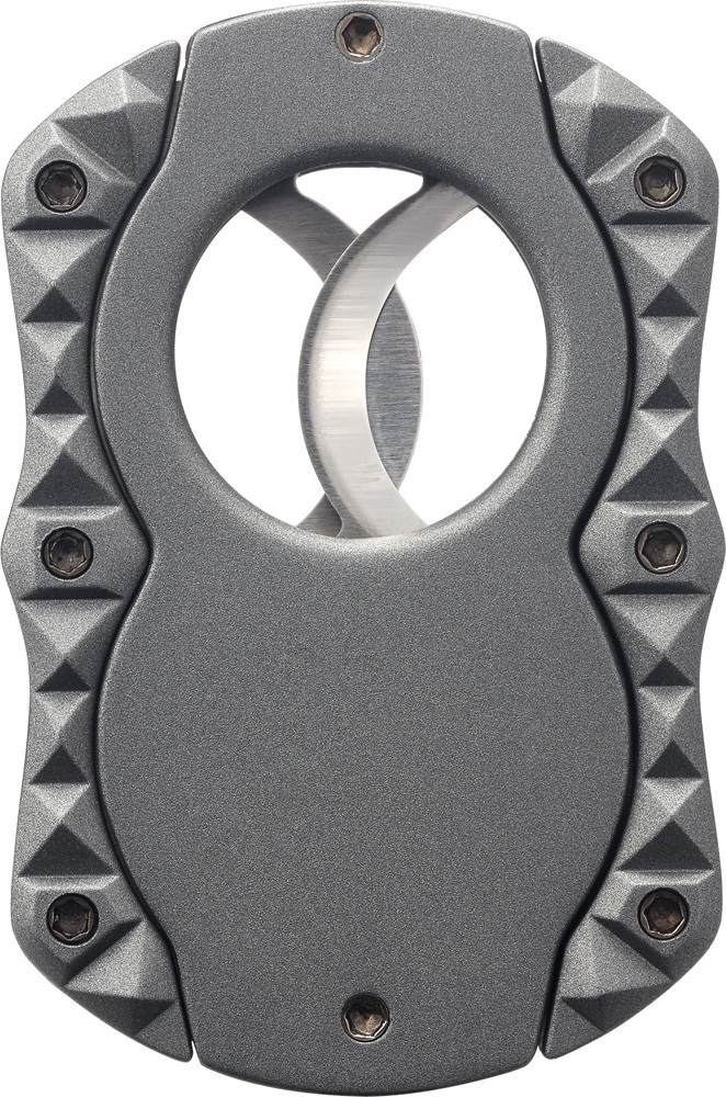Двойной сигарный резак гильотинного типа с уникальными лезвиями Sceleton из нержавеющей стали. Эргономичный футуристический дизайн Quasar для надежного хвата.