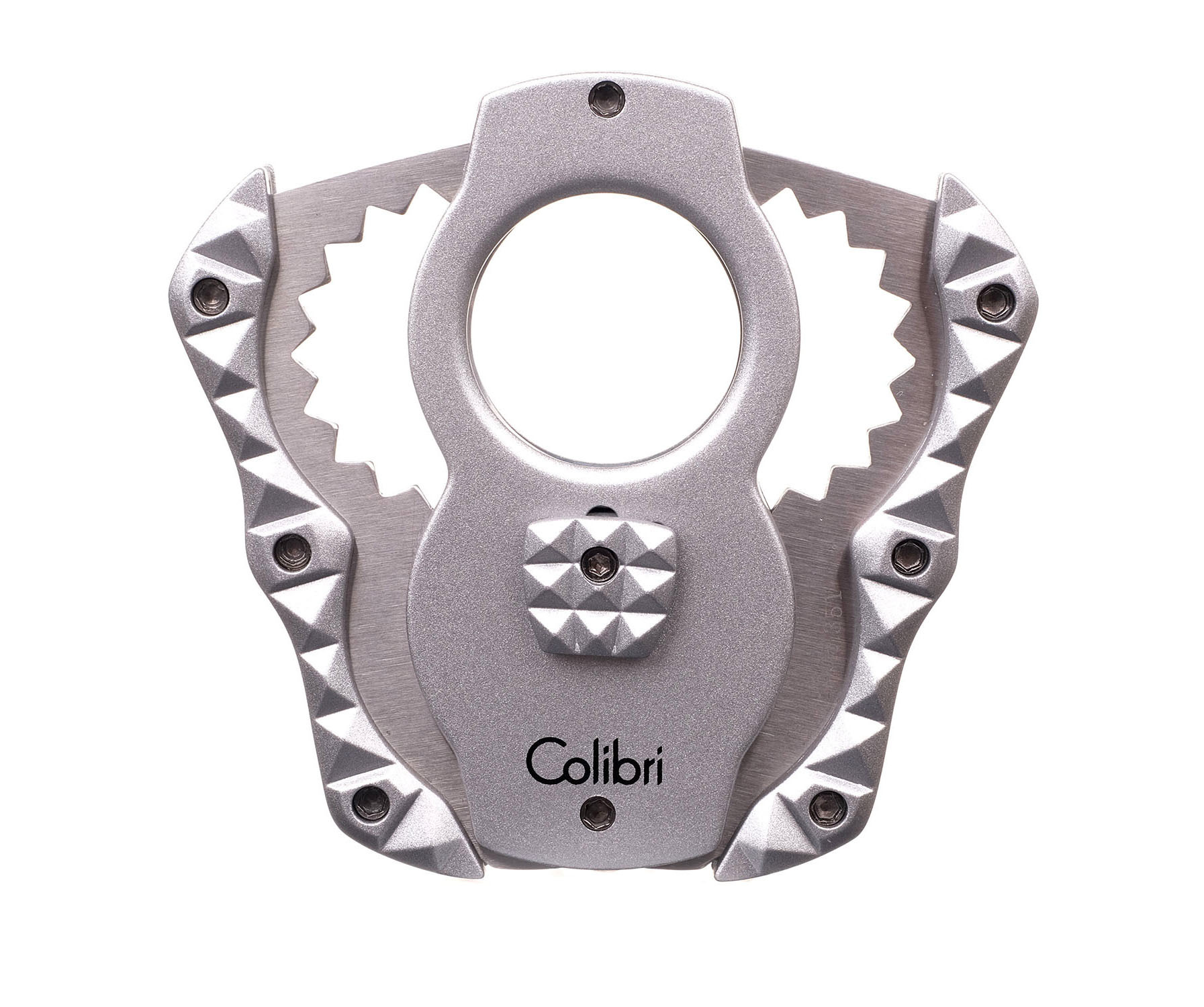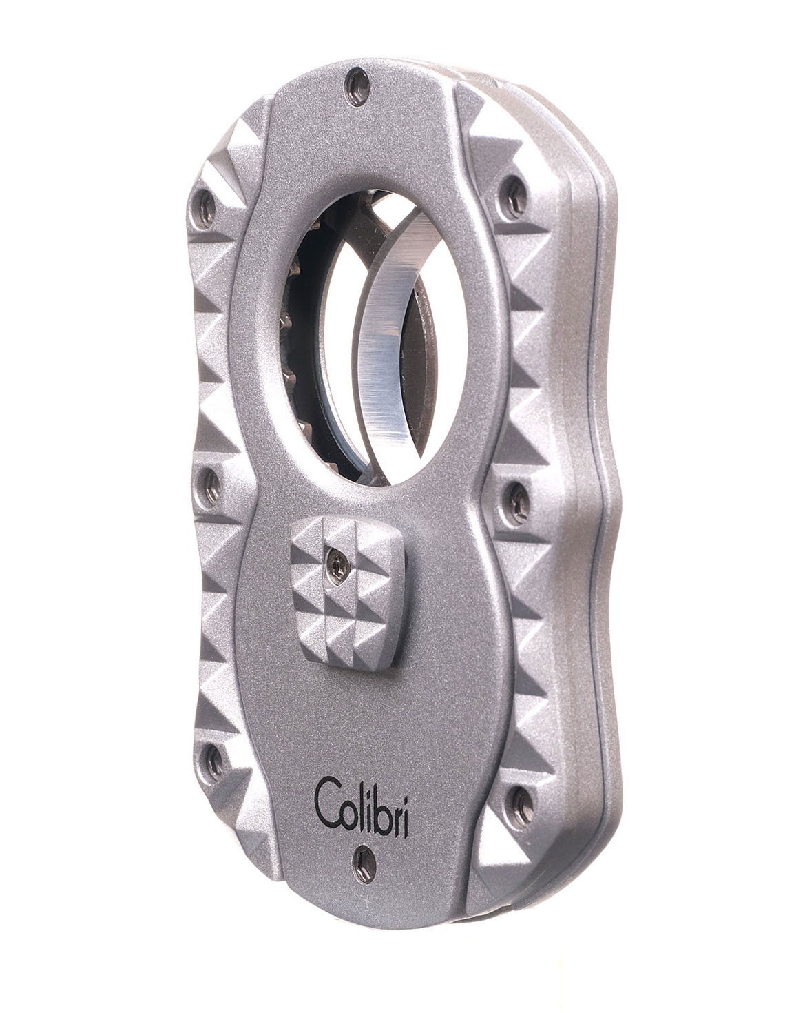 Двойной сигарный резак гильотинного типа с уникальными лезвиями Sceleton из нержавеющей стали. Эргономичный футуристический дизайн Quasar для надежного хвата.