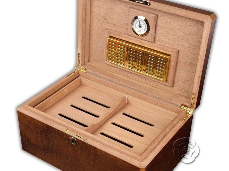 Изготовлен из массива дерева бубинго и отделан внутри шпоном испанского кедра. Хьюмидор содержит увлажнитель, благодаря которому в хьюмидоре поддерживается необходимый уровень влажности, при которой должны храниться сигары, чтобы сохранить в сигаре ее аромат и предотвратить процесс естественного разрушения ее покрова.