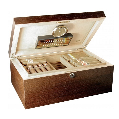 Хьюмидор на 150 cигар. Высококачественный матовый шпон орехового цвета. Красивая деревянная отделка