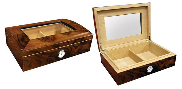 Стильный хьюмидор Бизнес-класса с выпуклой верхней частью и скошенным стеклом.