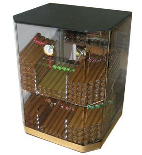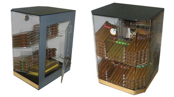 Акриловый хьюмидор-дисплей. Имеет 6 неизменяемых отсеков, заднюю дверь, гигрометр, замок и ключ.