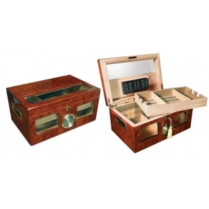 Неповторимый вид хьюмидора определяет стеклянная крышка сверху и стеклянные вставки на лицевой стороне, что позволяет любоваться купленными Вами сигарами. Без сомнения данный хьюмидор для сигар придаст дополнительный шарм и имидж не только своему владельцу, но и месту где он будет находиться!