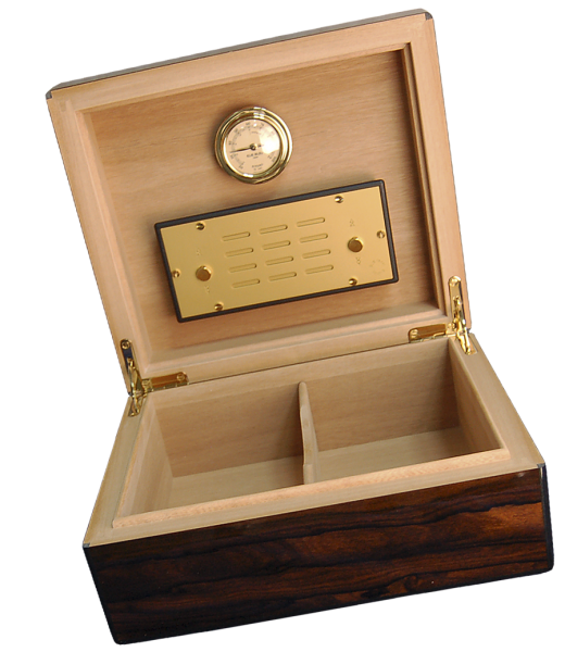 Комплектация – гигрометр, 1 увлажнитель, съемный разделитель для сигар, ключ.