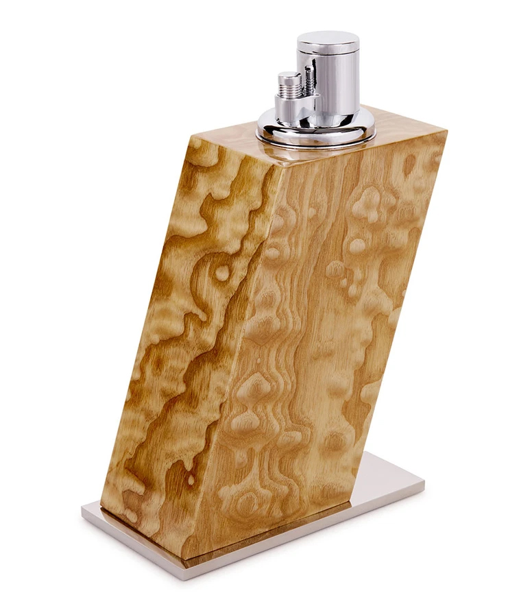Жизнь легендарных Elie Bleu начинается с заготовок из тщательно отобранной и распиленной древесины. Специалисты этой французской фирмы работают в лучших традициях краснодеревщиков XVIII века и относятся к каждому своему созданию с пиететом. В течение полугода над ними трудятся умелые руки мастеров компании: распиловка, фугование, фрезерование, шлифовка, склеивание, промежуточные сушки, многослойная лакировка, полировка, отделка. Продолжительный производственный цикл изделий такого уровня невозможно выполнить в течение несколько дней, потому что Elie Bleu основной акцент делает на труд мастеров, нежели на технологический момент, что вот уже 20 лет способствует необыкновенной популярности этих хьюмидоров у любителей и коллекционеров сигар. Процесс выбора и подготовки древесины – один из самых важных и принципиальных моментов в производстве хьюмидоров Elie Bleu. Дерево перед использованием должно храниться 10 лет на открытом воздухе, но под защитой от непогоды. Заготовки должны иметь ровную совершенную структуру, не иметь трещин и не должны покоробиться. Красота изделий также зависит от качества и красоты рисунка шпона, используемого для внешней отделки хьюмидоров. Естественные натуральные дефекты дерева, такие как сучки, темные пятна, отверстия, трещины присутствуют в той или иной степени в любом шпоне. Инкрустация выполняется из кусочков редких пород дерева, имеющих различную текстуру и окраску и вырезанных, в соответствии с разработанным дизайнером рисунком. Путем искусного подбора форм, текстур и цветовых оттенков создаются орнаменты и композиции исключительной красоты. Каждое из изделий покрывается многочисленными слоями высококачественного лака.