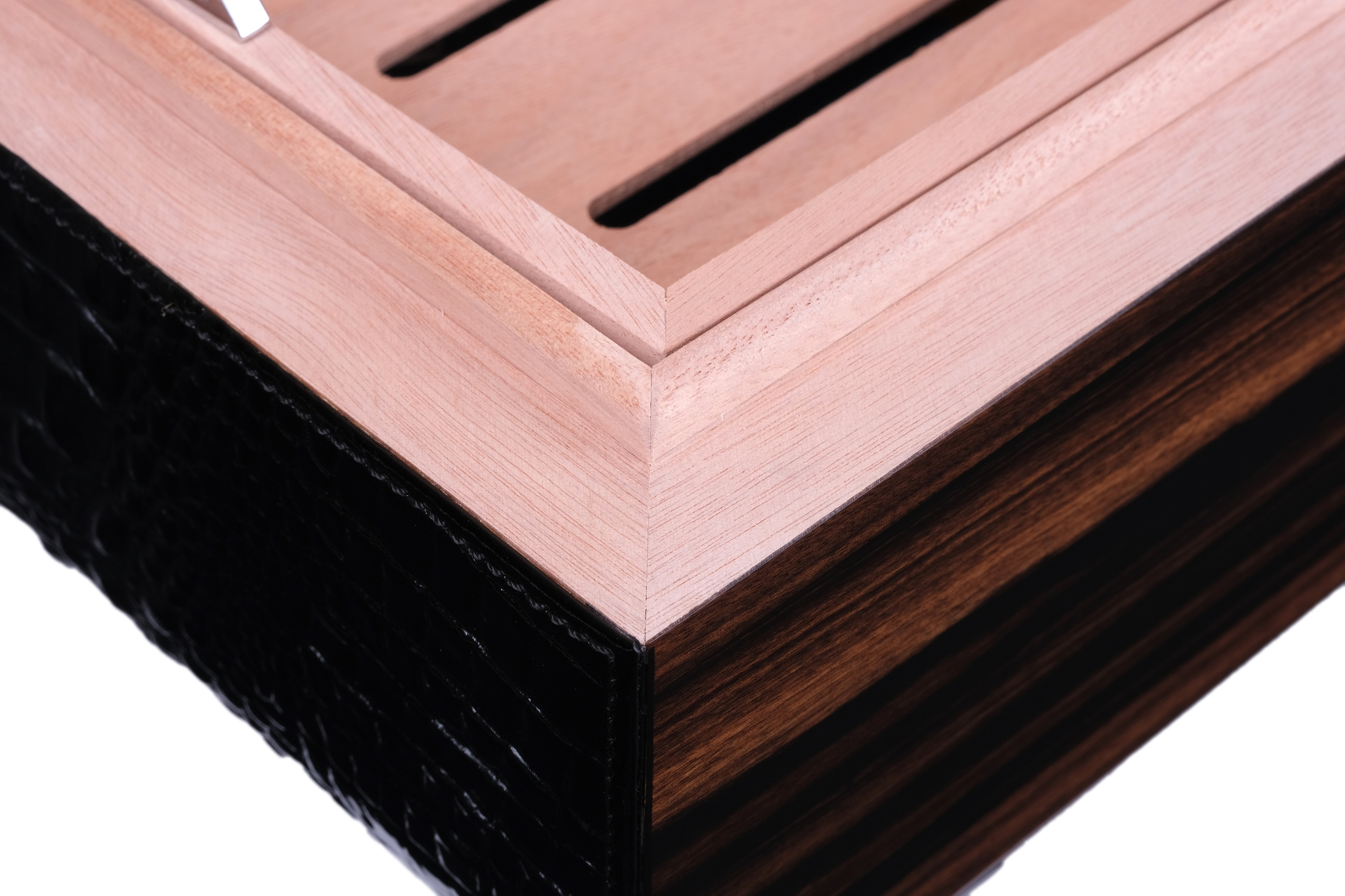 Материал: Телячья кожа (тиснение под крокодила), дерево (палисандр и макассар), Испанский кедр