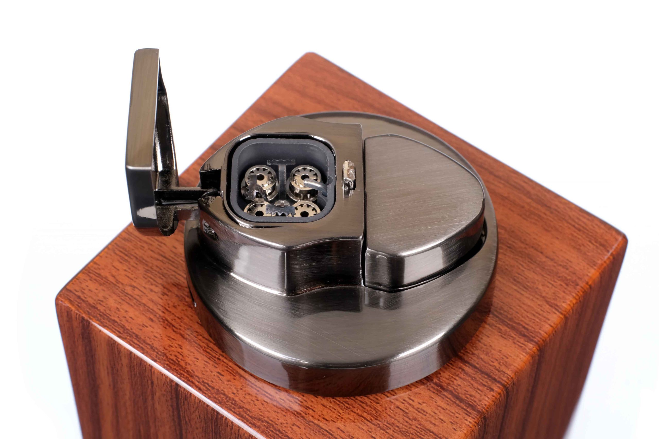 Внутренняя отделка выполнена из высококачественного испанского кедра. Корпус отделан ценным шпоном Бразильского Розового дерева (Bahia Rosewood). Многослойное лаковое покрытие подчеркивает красоту дерева. В комплекте с хьюмидором Howard Miller идут увлажнитель, аналоговый гигрометр, 2 продольных и 2 поперечных перегородки для сигар (для наилучшей сортировки и вентиляции), подробная инструкция по эксплуатации. Тканевый чехол и подарочная коробка. Для настольного сигарного набора идеально сочетается с пепельницей Howard Miller и настольной турбозажигалкой Howard Miller в корпусе из того же материала. Производитель оставляет за собой право без предварительного уведомления вносить незначительные изменения в конструкцию или комплектацию изделия с целью улучшения его свойств.