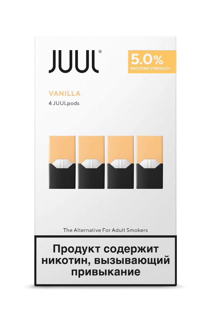 Нотки ванили, бархатистого заварного крема и крем-брюле! Упаковка с JUULpod картриджами, со вкусом "Ваниль" 5% никотин.