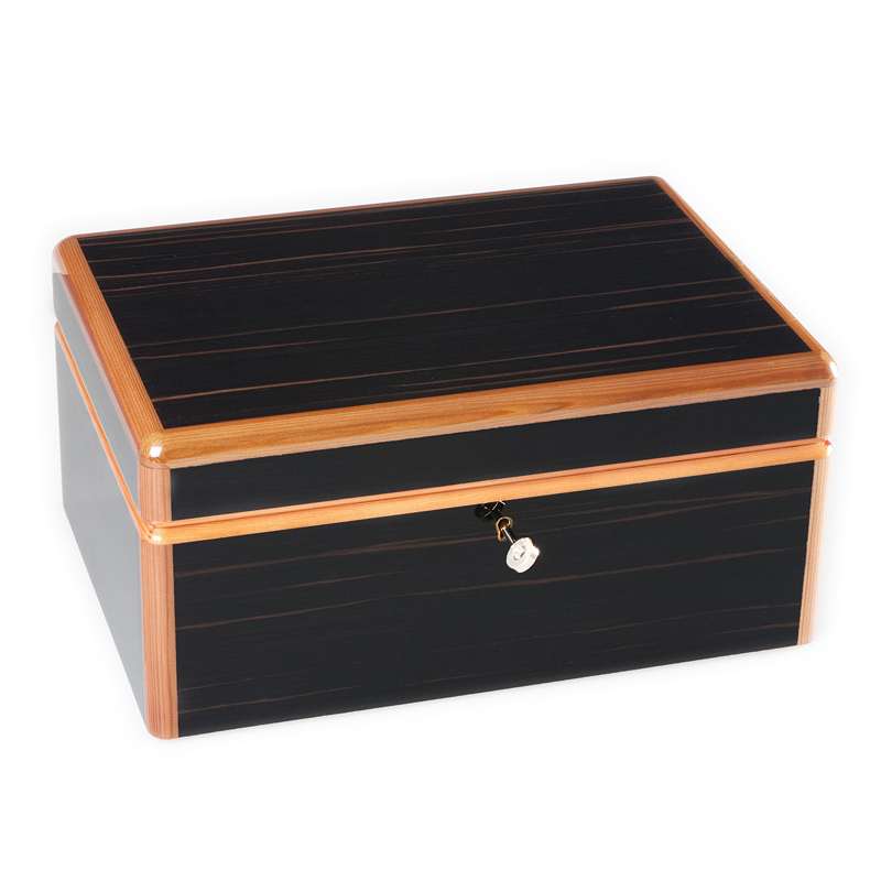 Хьюмидор отделан экзотическими породами дерева. Мозаика выполнена из кусочков редких пород дерева, имеющих различную текстуру и окраску. Спрессованные друг с другом, они образуют необычные формы. Эскиз мозаики рисуется на тонкой бумаге, которую затем помещают на изделие. Мастера старательно наносят ажурную инкрустацию, следуя рисунку. Кусочек за кусочком тонкие слои дерева наносятся сначала на бумажную основу. Отдельные части мозаики, требующие дополнительного блестящего эффекта, погружаются на 10 секунд в горячее масло, что придает необычный цвет и дополнительный блеск дереву. Для составления мозаики применяется специальный клей, которым покрывается вся поверхность бумажного листа, помещаемого на деревянную поверхность. Затем изделие шлифуют до получения идеально гладкой поверхности. В качестве последнего штриха поверхность пропитывают специальным маслом. Такой подарок - бесценное наследство, которое будет жить вечно.