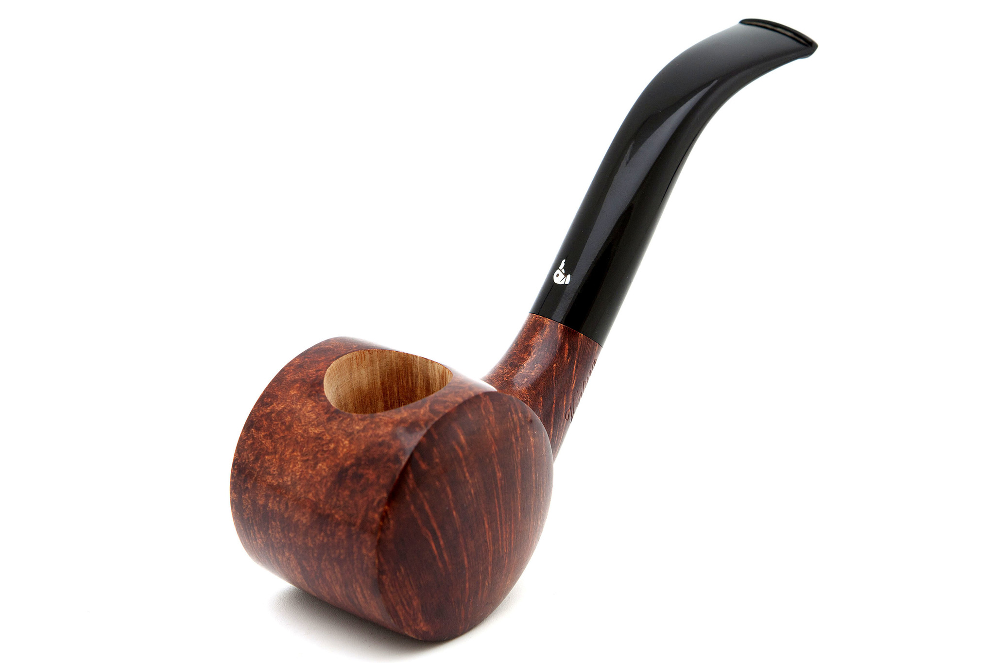 Трубка классической формы. Можно ставить на стол во время курения. На мундштуке нанесен символ компании — серебряная голова утки и на чубуке — девиз L’Anatra dalle uova d’oro — «Утка несущая золотые яйца» и «Hand made in Italy».