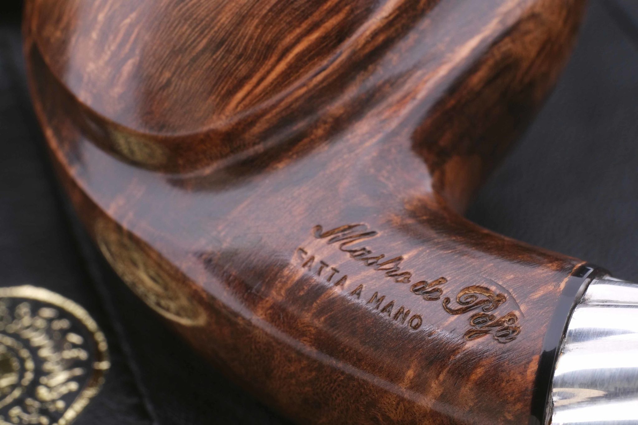Табачная камера карбонизирована. В комплекте фирменный кожаный кисет, подарочная коробка и буклет-каталог компании Mastro de Paja.