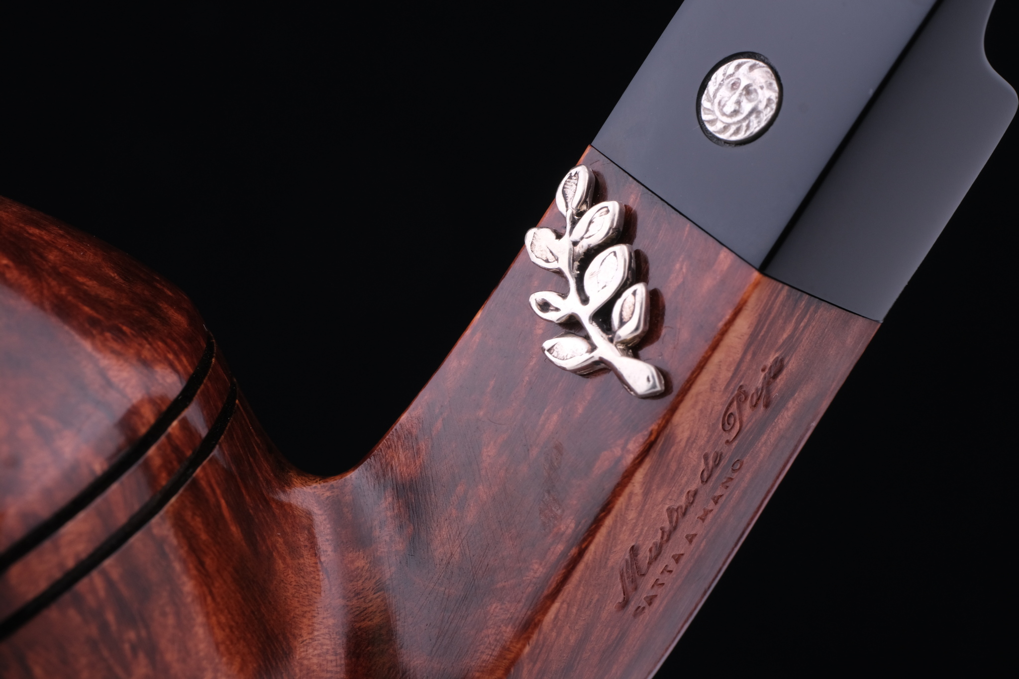 Трубка грэйда 3A оригинальной формы, украшенная оливковой ветвью из серебра 925 пробы.
