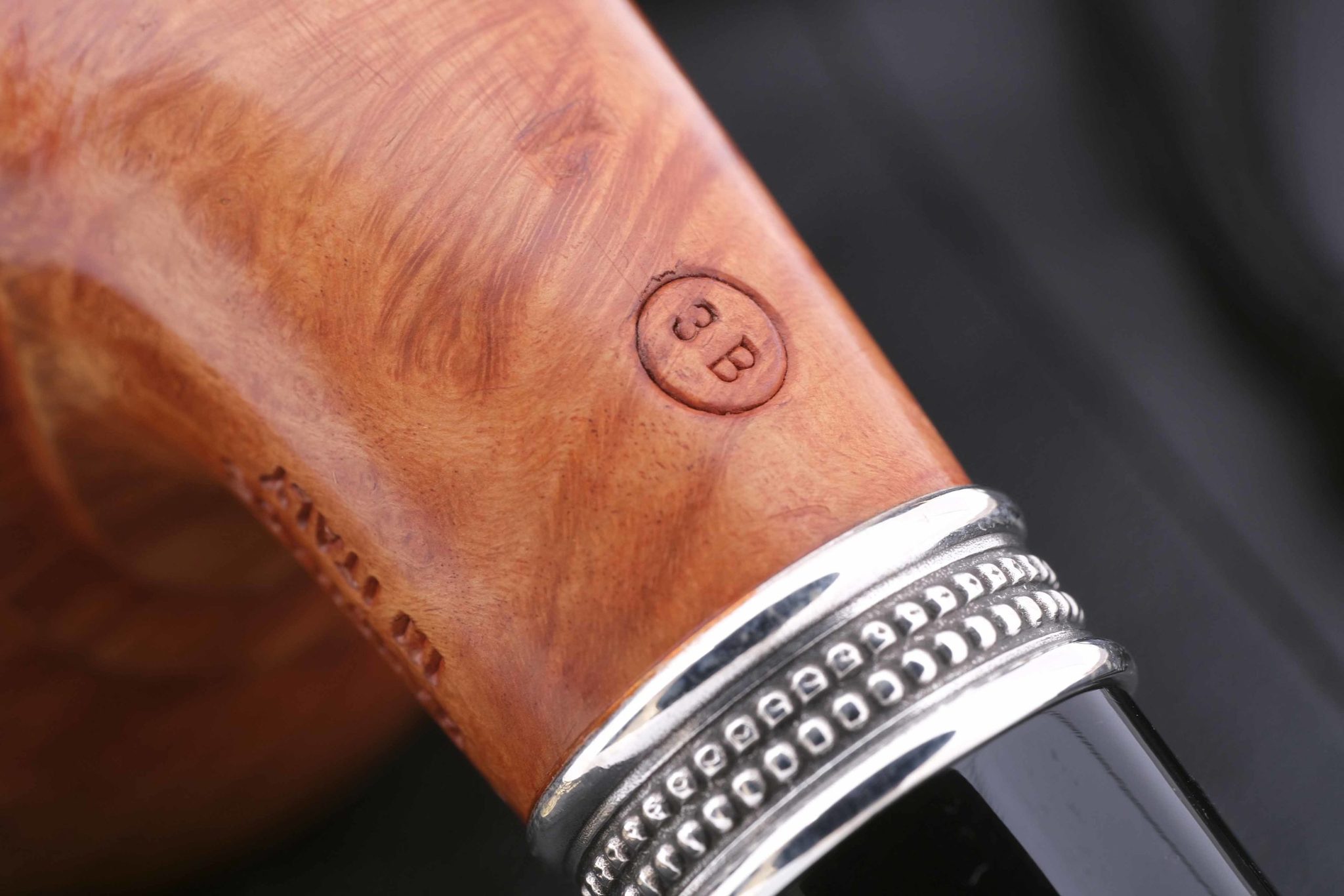 Трубка высокого грэйда 3В L и оригинального дизайна из серии Limited Edition. Резное кольцо на чубуке — серебро 925 пробы.