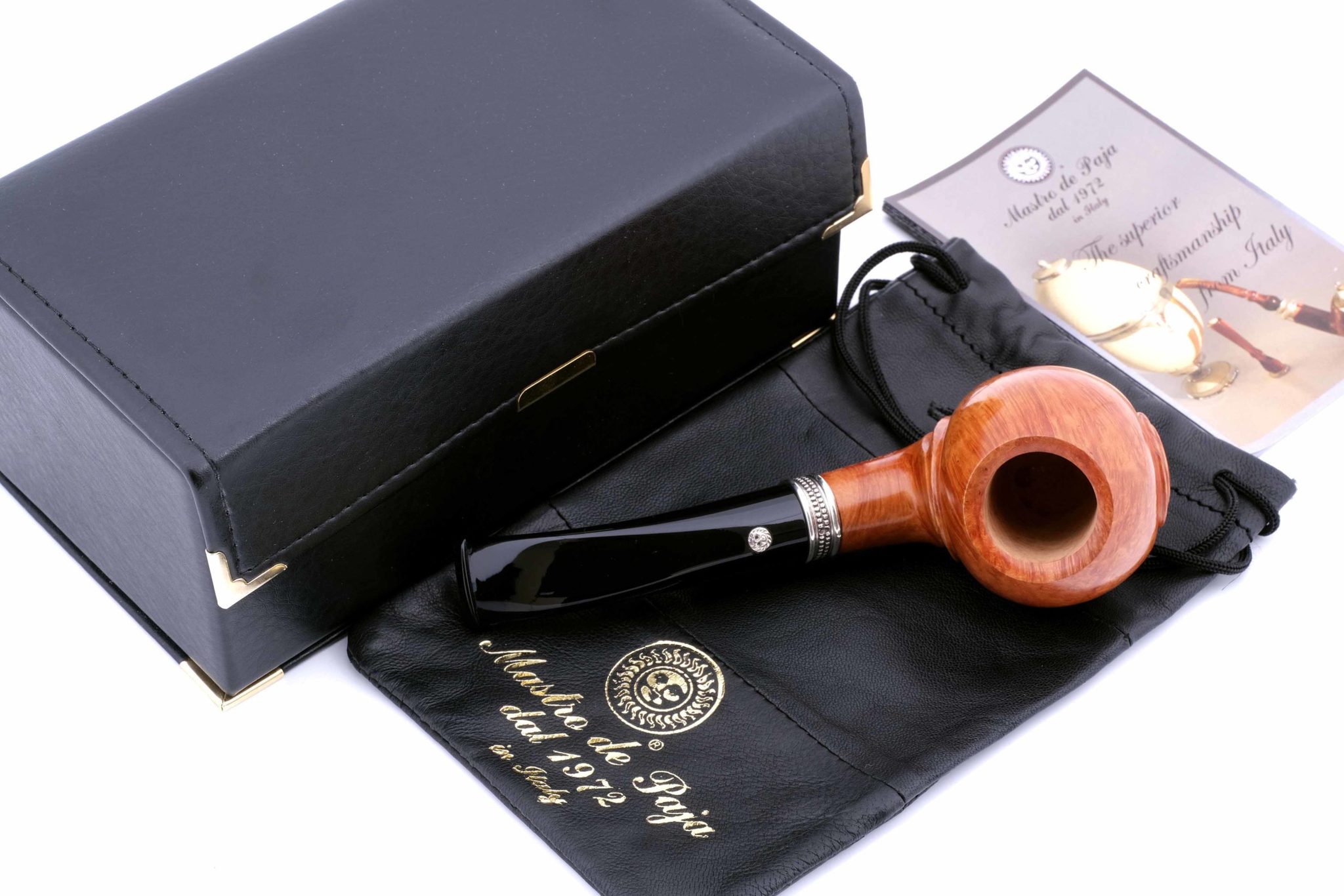Табачная камера не карбонизирована. В комплекте фирменный кожаный кисет, подарочная шкатулка и буклет-каталог компании Mastro de Paja.