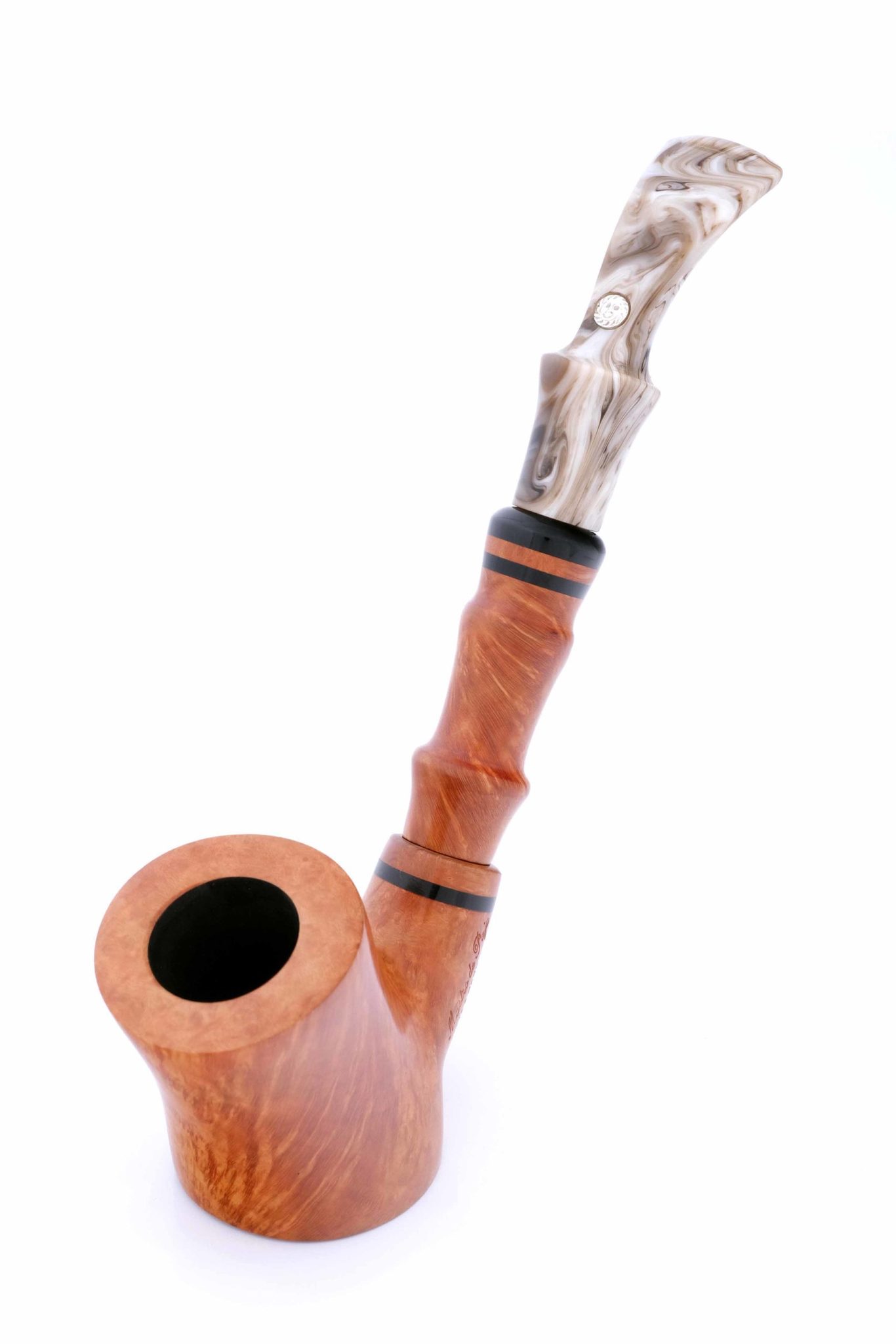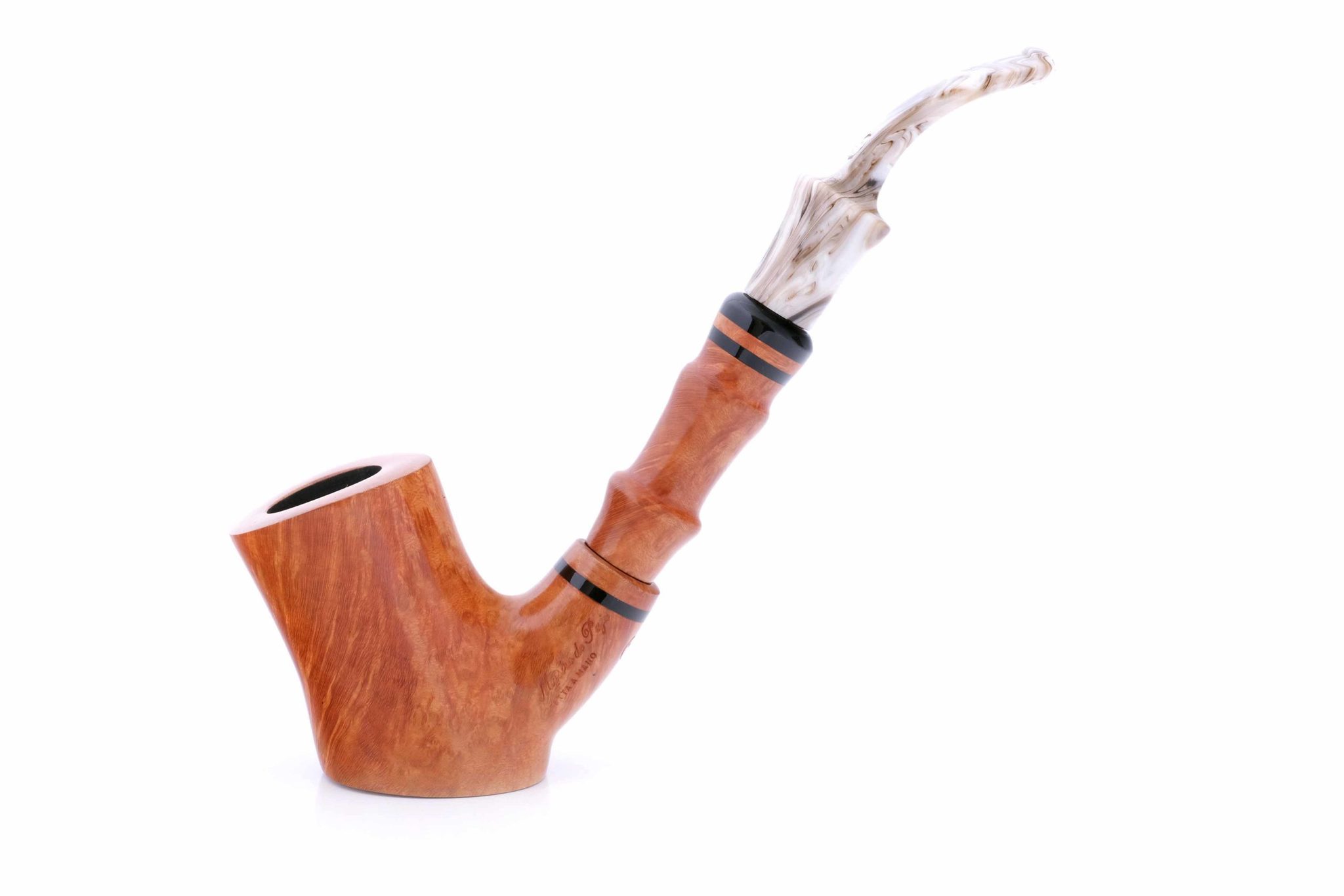 Трубка высокого грэйда 3B S модели Stand-up. Мундштук имеет съемный удлинитель из бриара, имитирующий бамбуковые модели, предназначен для более прохладного и комфортного курения.