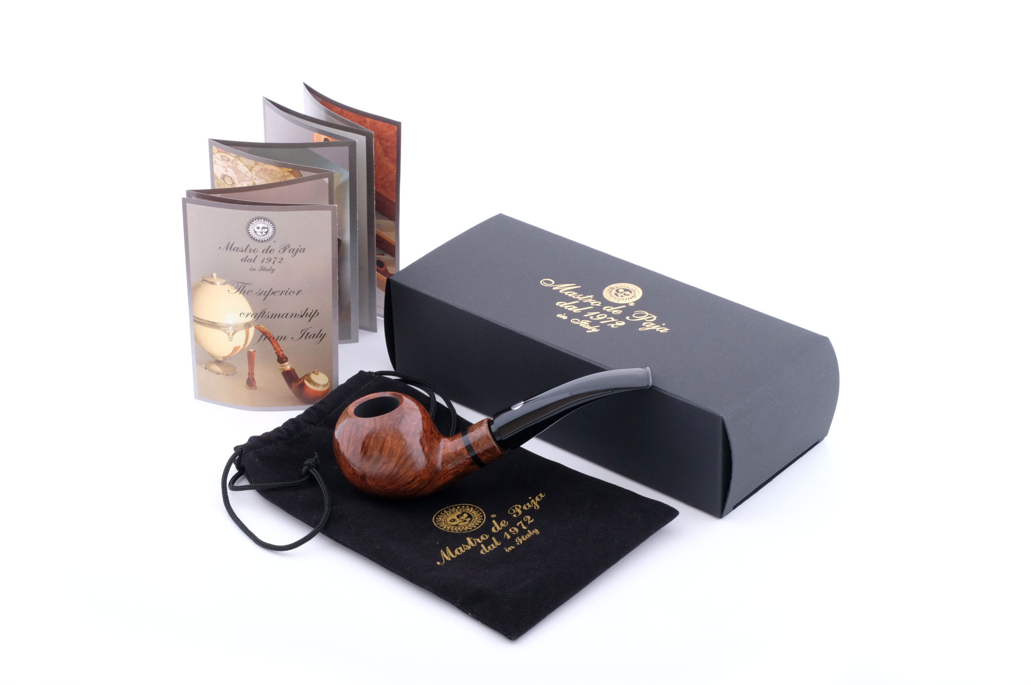 Табачная камера карбонизирована. В комплекте фирменный кисет, подарочная коробка и буклет-каталог компании Mastro de Paja.