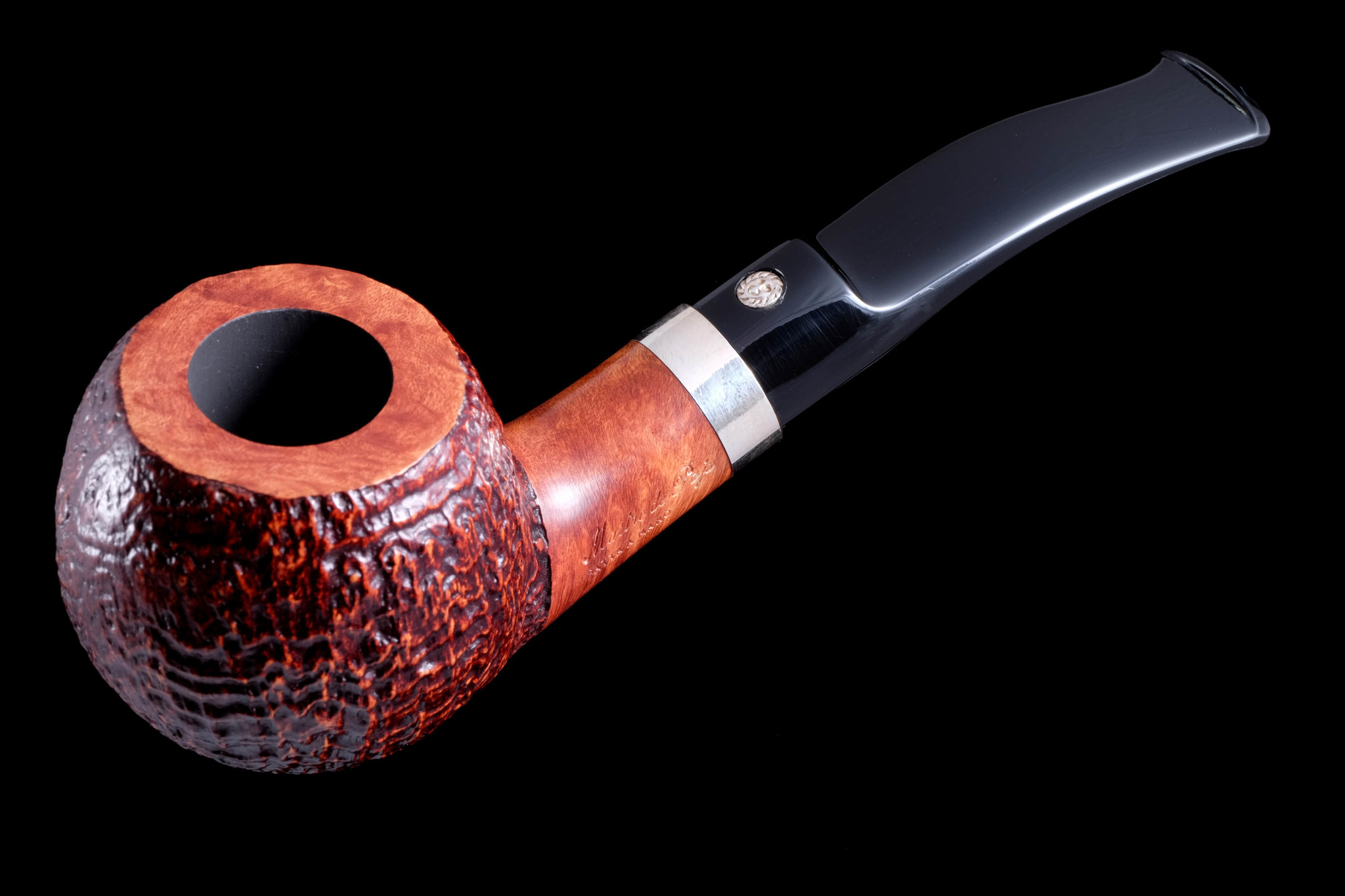 Мундштук — акрил. Кольцо на чубуке — серебро 925 пробы. Табачная камера карбонизирована.