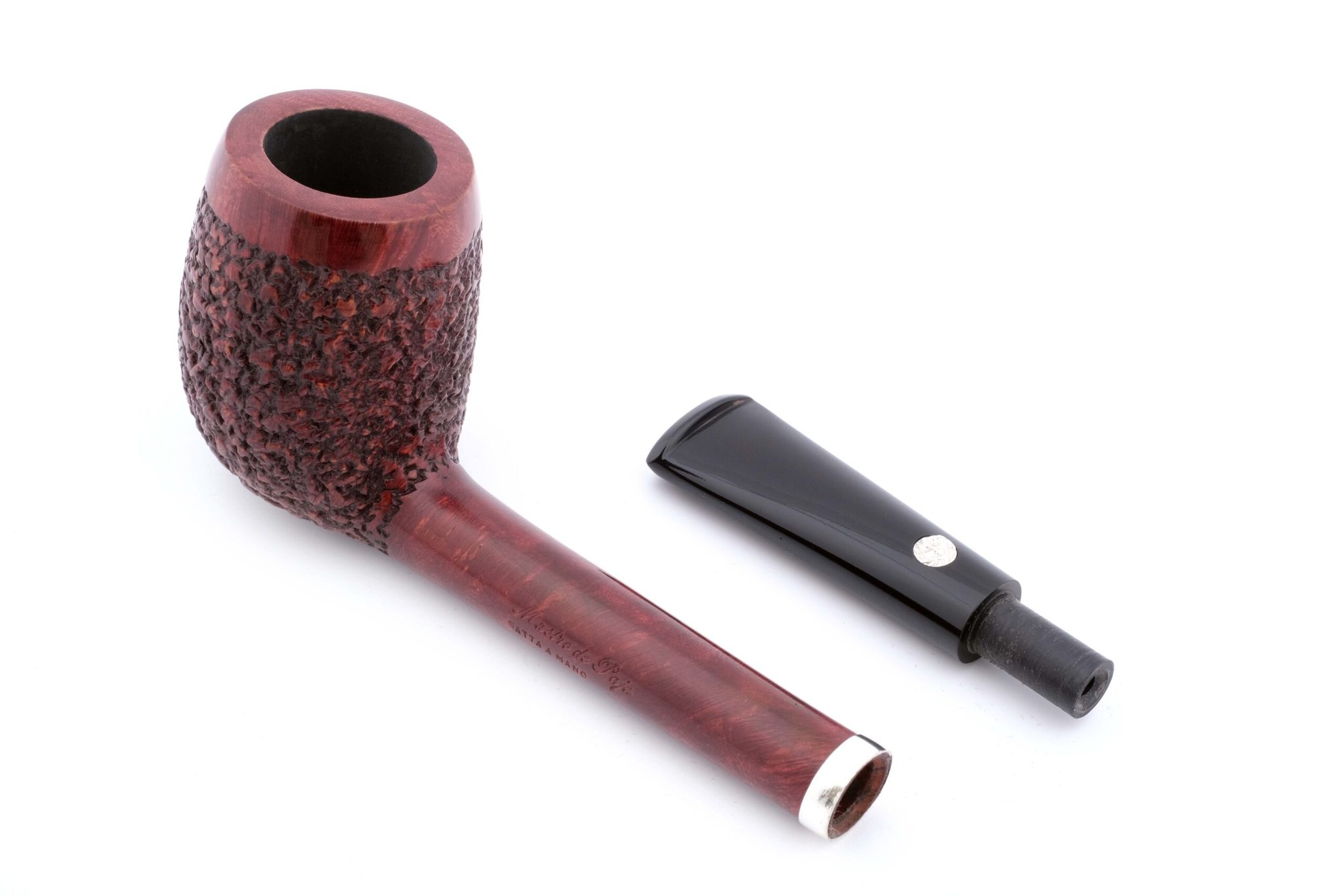 Почти невесомая авторская "Канадка" грэйда OB L с рустированной чашей. Площадь поверхности трубки при этом увеличивается, что способствует лучшему охлаждению чаши и более приятному "прохладному" курению. Также снижается и вес трубки. Мундштук - акрил. Фигурное кольцо на чубуке - серебро 925 пробы. бесфильтровая Вес 33 гр. Длина трубки 14 см. Диаметр чашки 36 мм., высота чашки 46 мм. Диаметр табачной камеры 20 мм., глубина 40 мм. В комплекте фирменный кисет, подарочная коробка и буклет-каталог компании Mastro de Paja. Ручная работа, единственный экземпляр.
