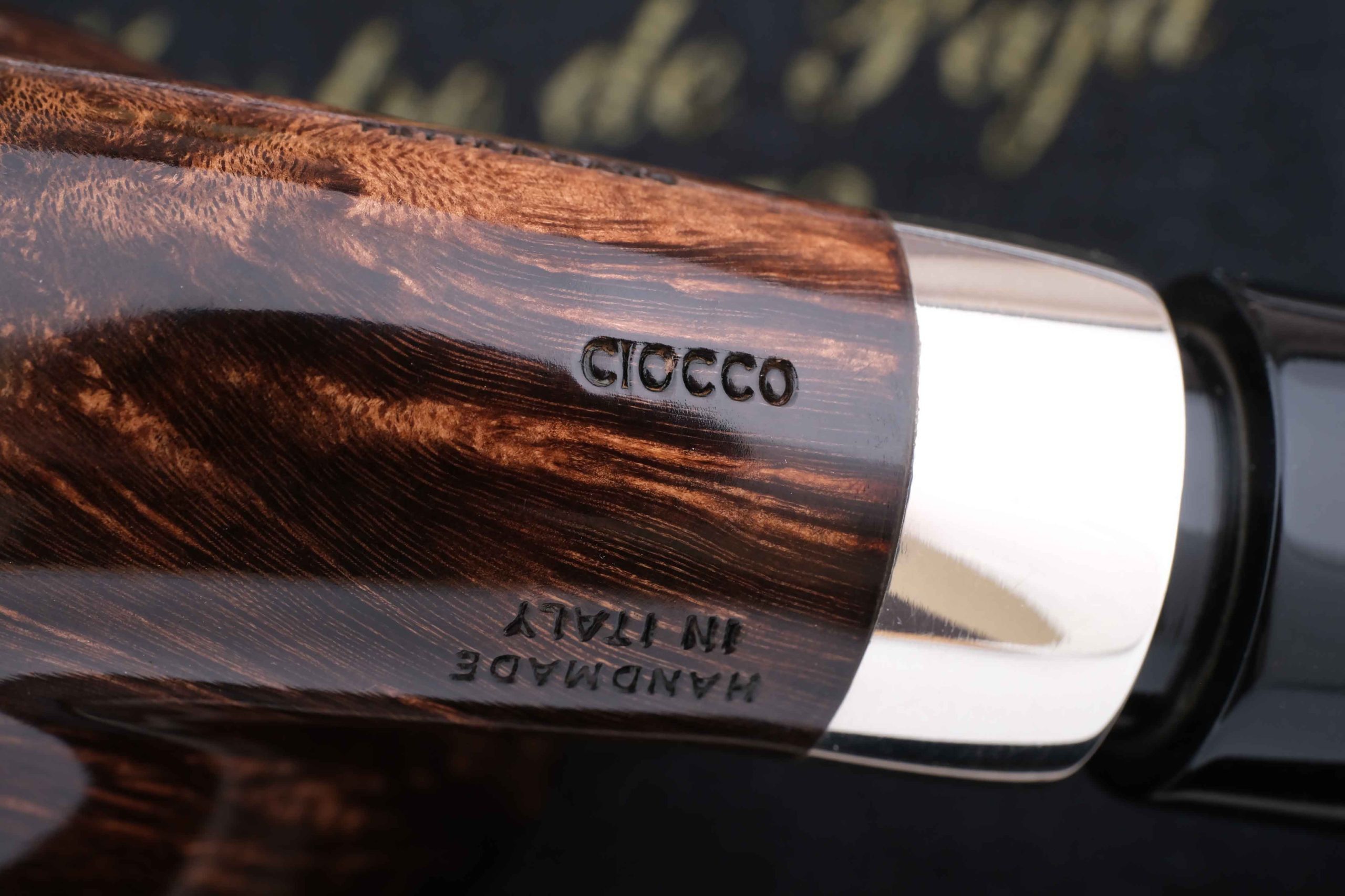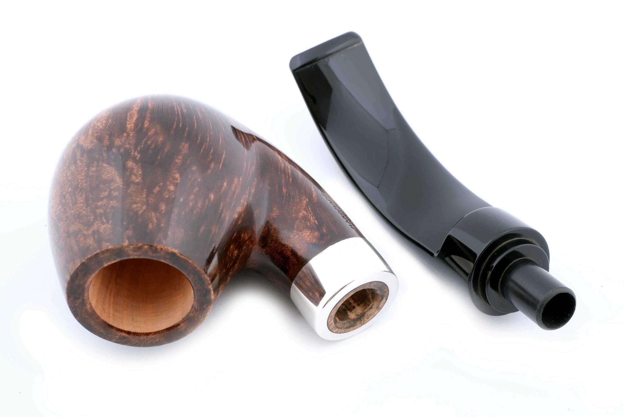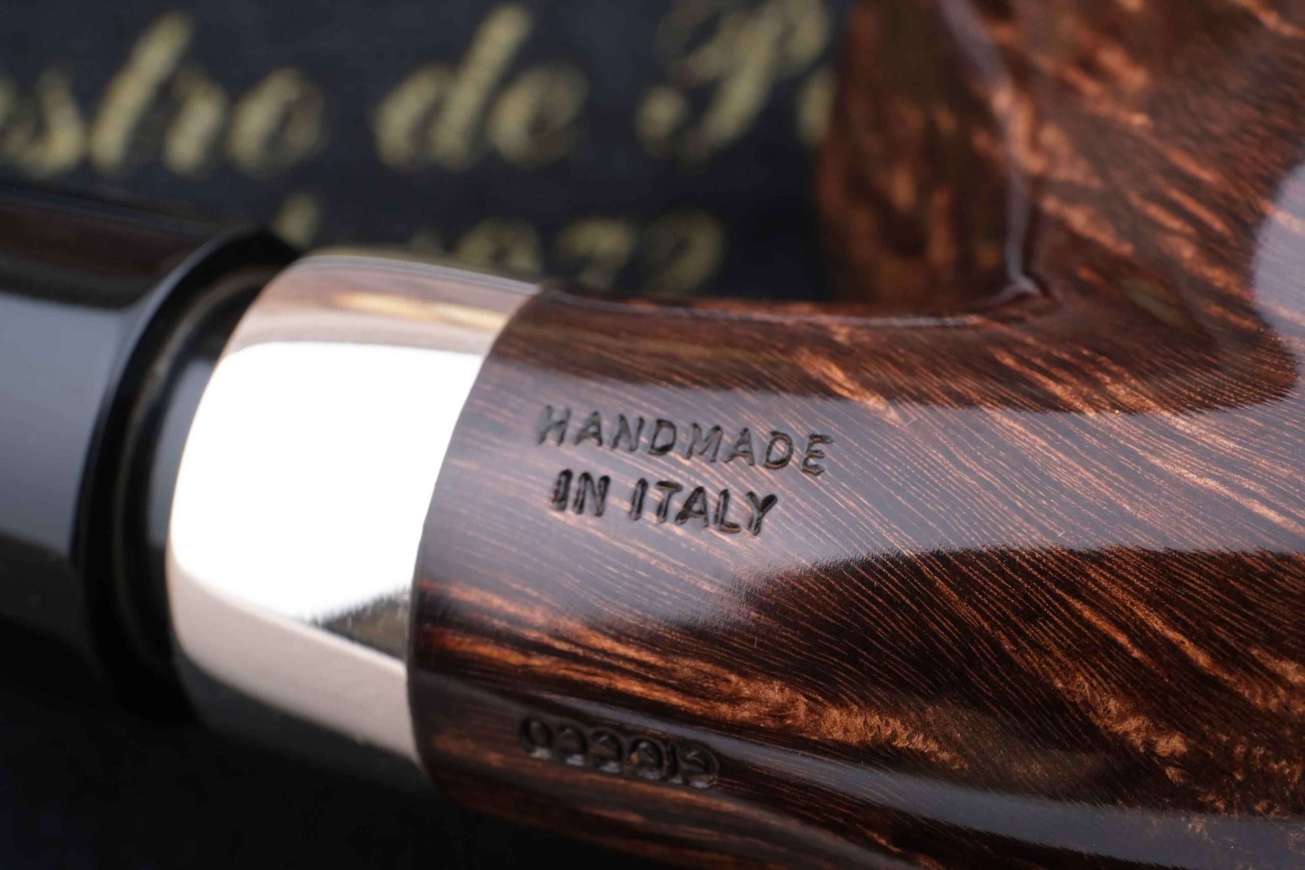 Оригинальная трубка модели Ciocco, посвященная прошедшему 50-летнему юбилею мастерской Мастро де Пайа. Принадлежит к лимитированной серии Unica, где каждый экземпляр неповторим, имея свой индивидуальный дизайн.