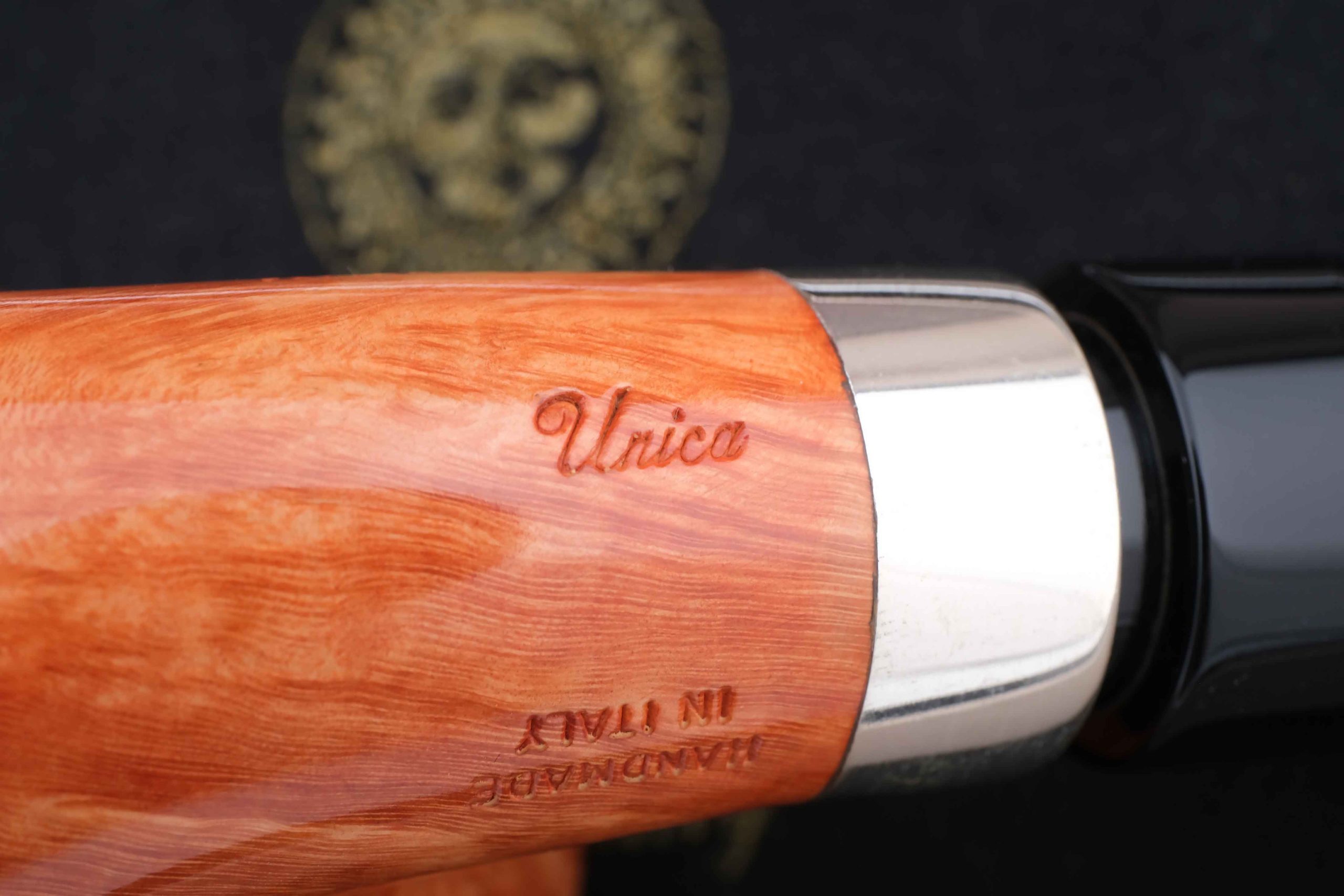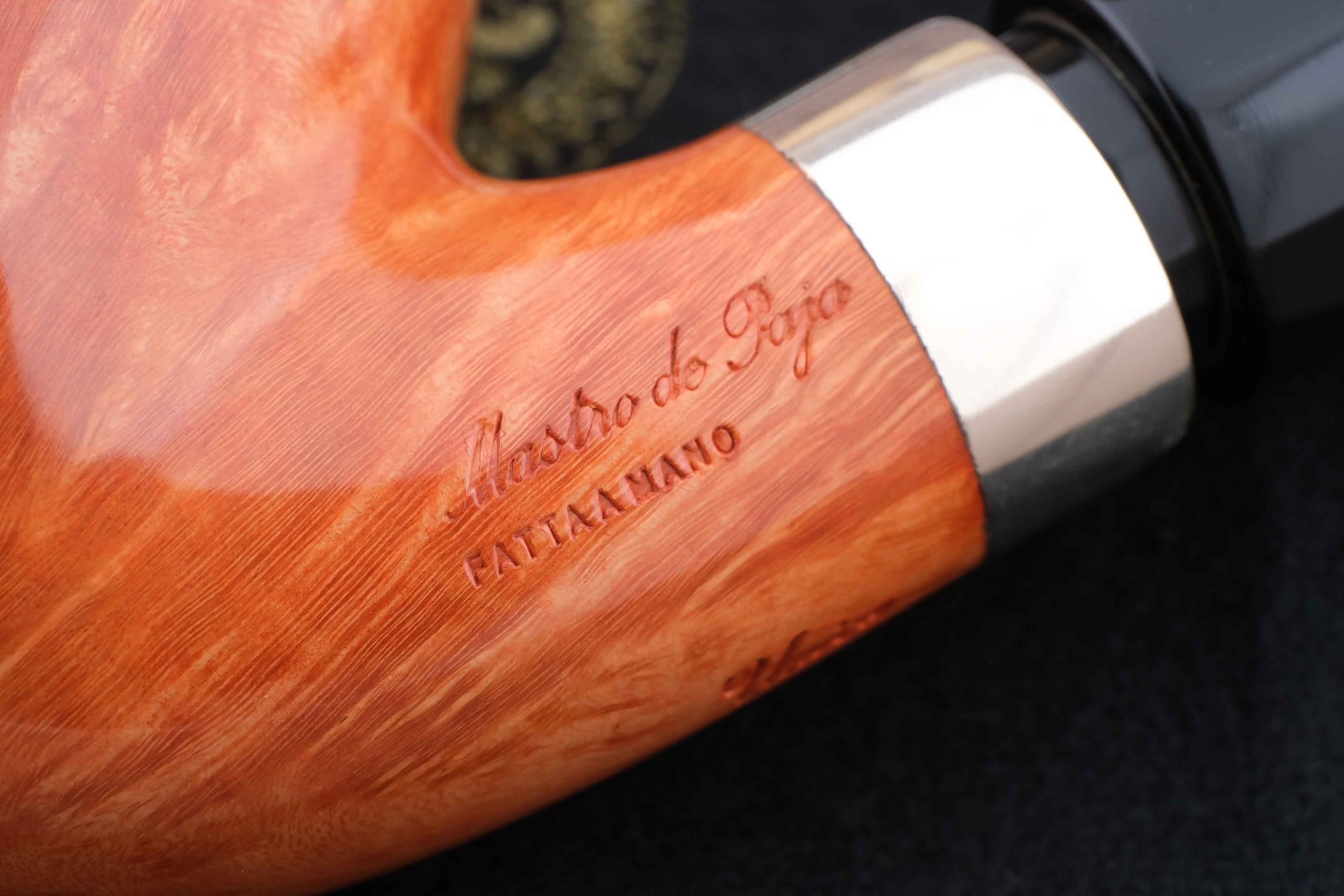 Оригинальная трубка модели Ciocco, посвященная прошедшему 50-летнему юбилею мастерской Мастро де Пайа. Принадлежит к лимитированной серии Unica, где каждый экземпляр неповторим, имея свой индивидуальный дизайн.