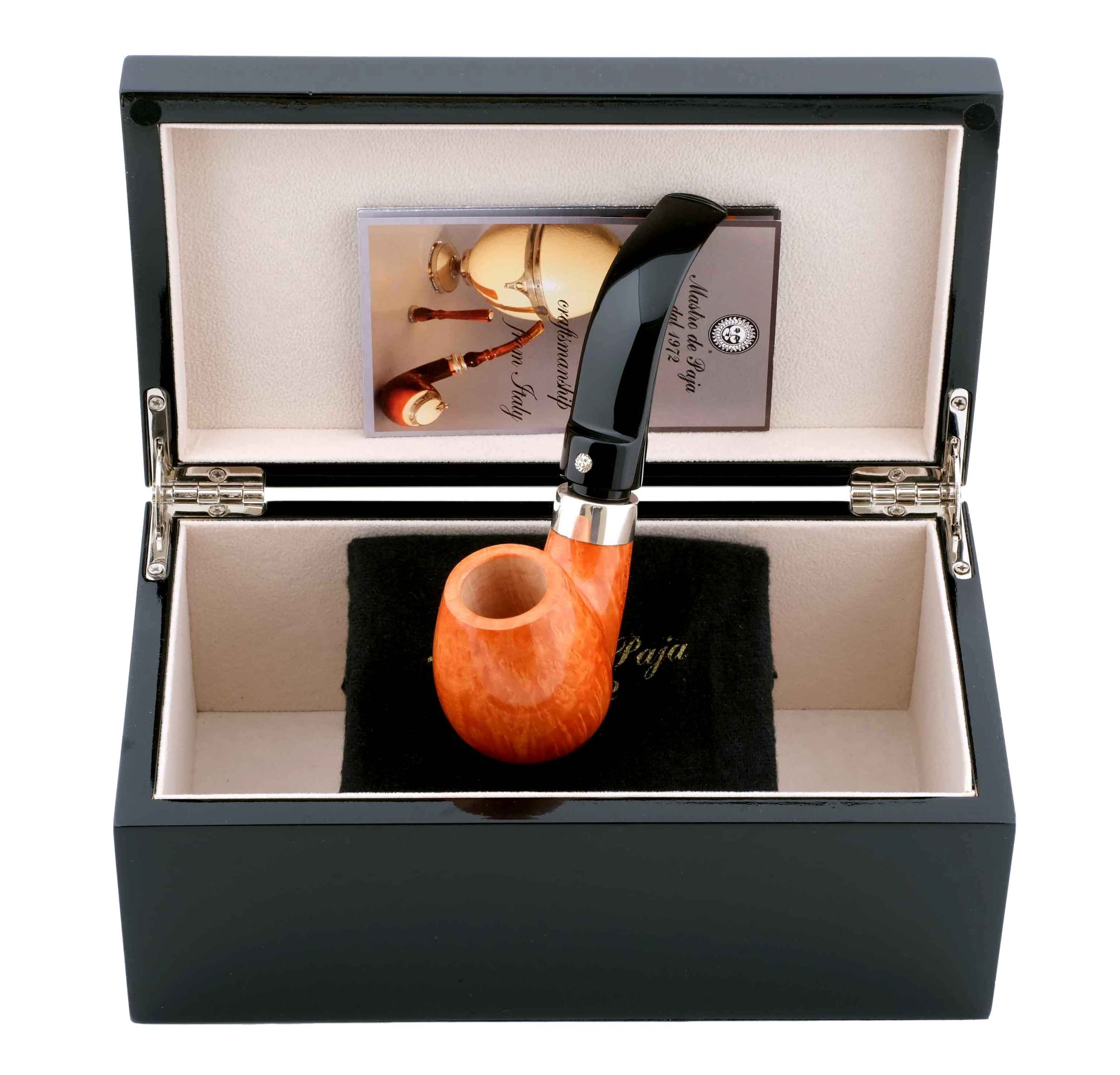 В комплекте подарочная шкатулка, фирменный кисет и буклет компании Mastro de Paja. Ручная работа, единственный экземпляр.