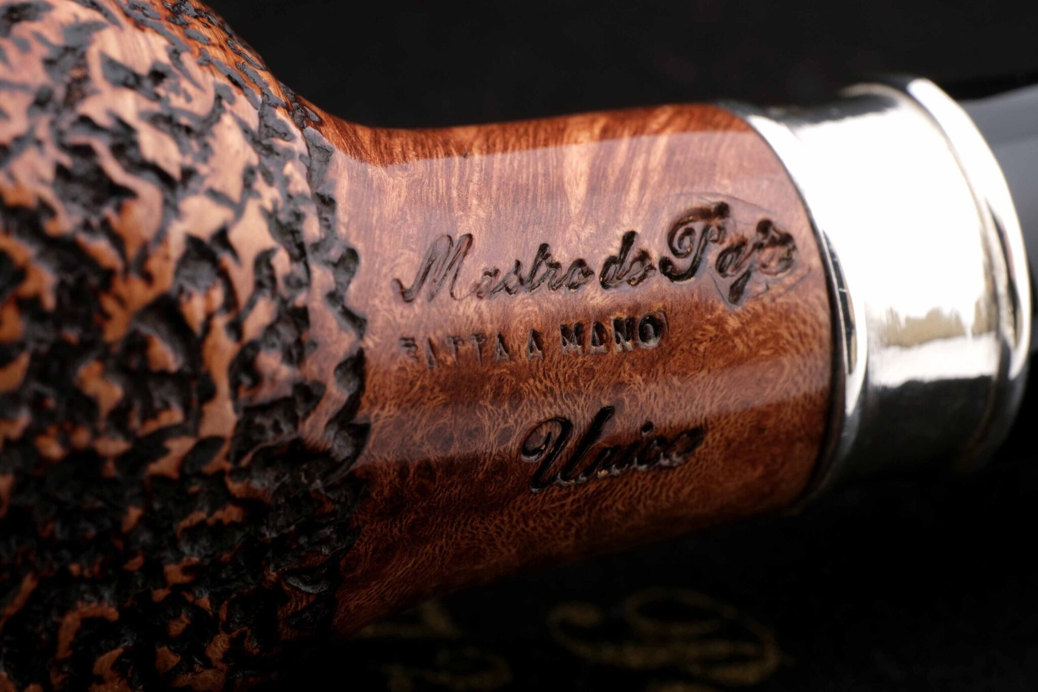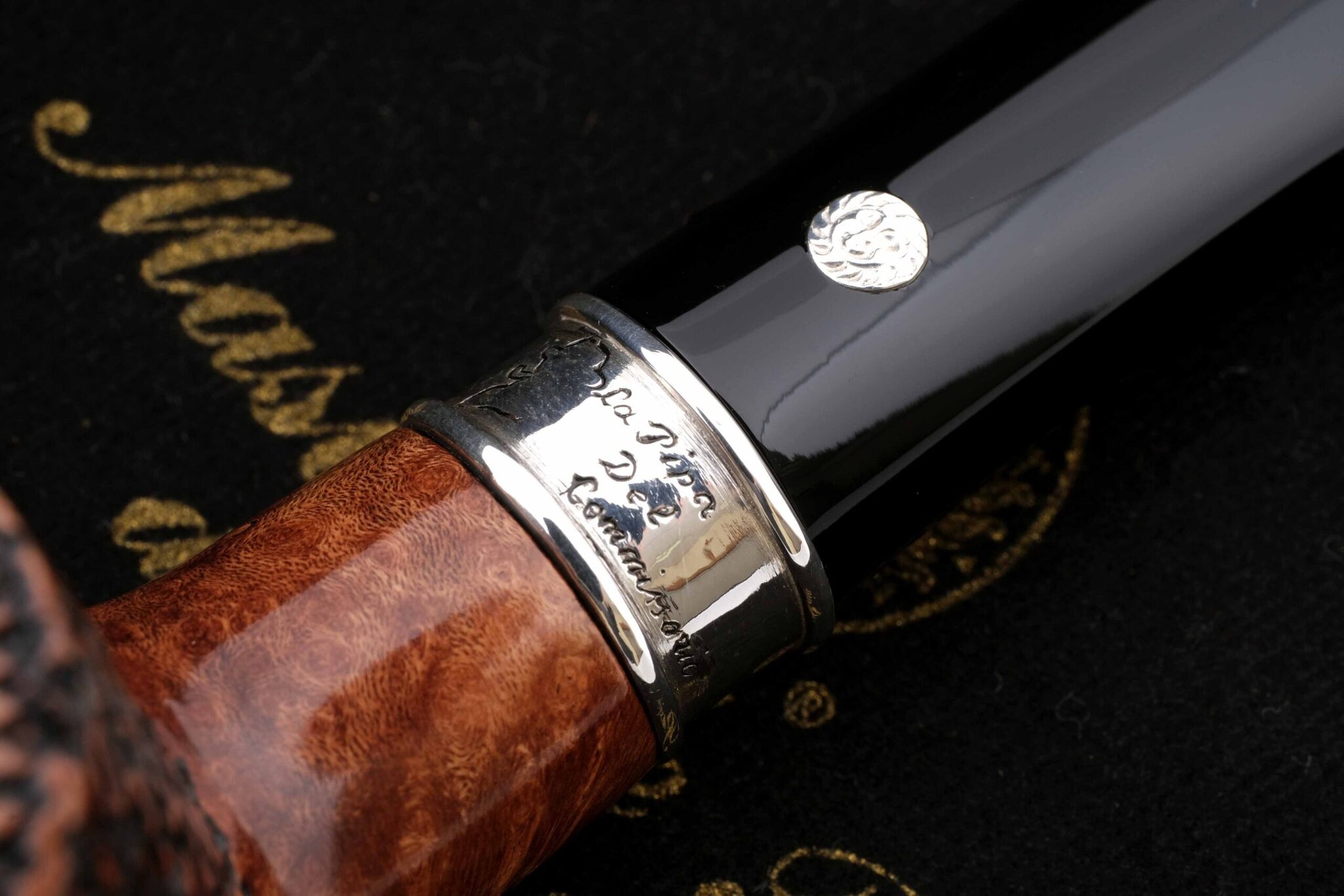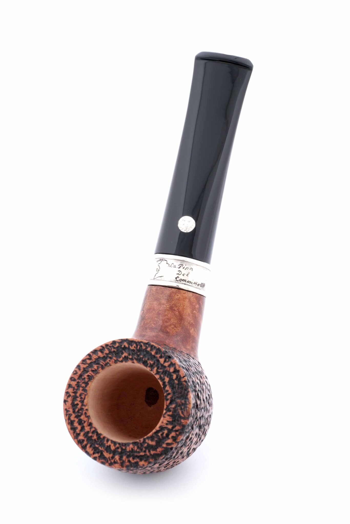 Распутывать сложные дела ему помогала неизменная трубка формы «прямой Бильярд». Подобную модель и воссоздали в мастерской Мастро де Пайа, украсив кольцо гравировкой с абрисом Мегрэ и надписью «Трубка Комиссара». Мундштук — акрил. Кольцо на чубуке выполнено из серебра 925 пробы. В комплекте фирменный кисет и подарочная коробка. Ручная работа, единственный экземпляр.