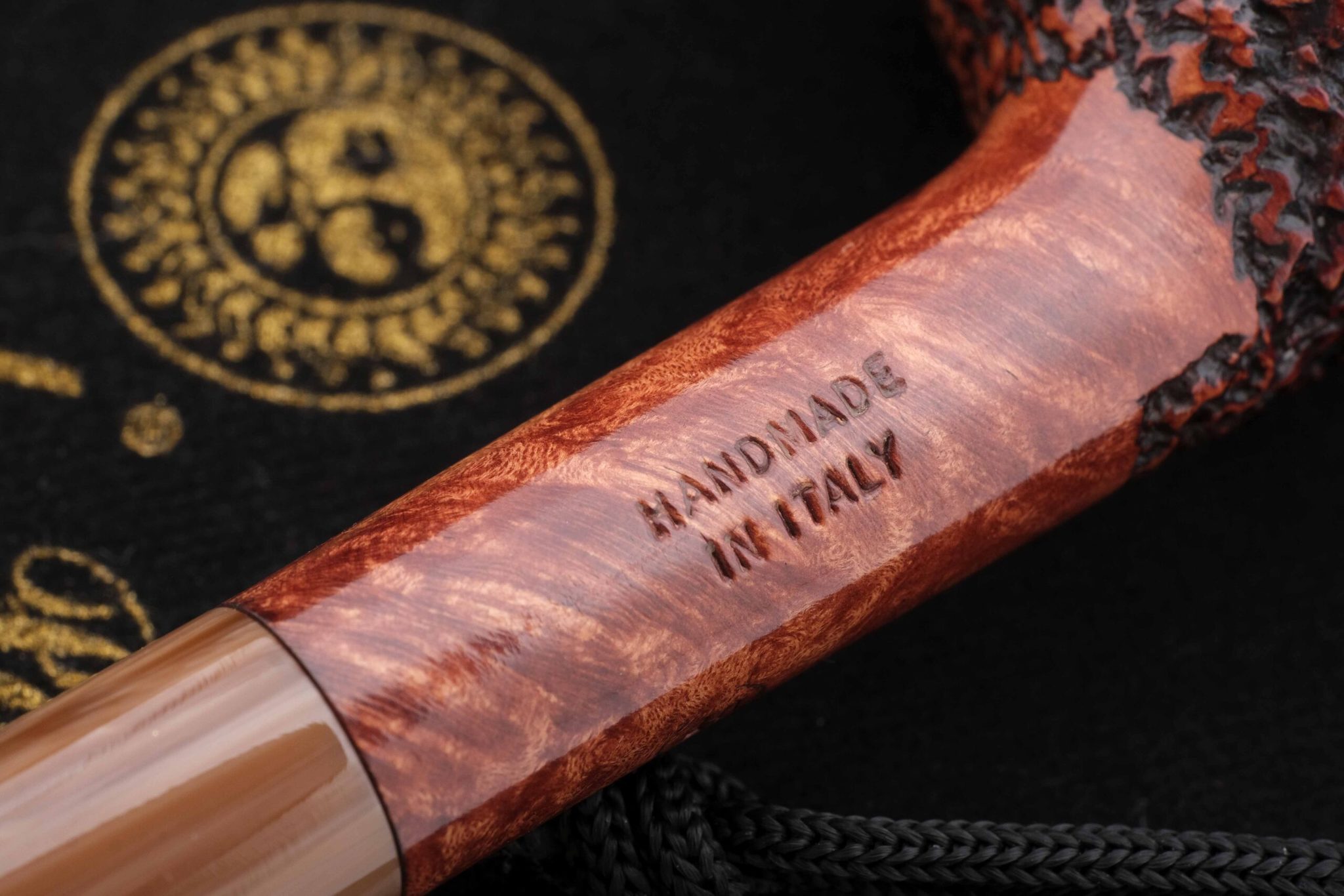 Легкая бесфильтровая авторская курительная трубка Мастро де Пайа с рустированием. Площадь поверхности трубки при этом увеличивается, что способствует лучшему охлаждению чаши и более приятному "прохладному" курению. Также снижается и вес трубки. Мундштук - цветной акрил. бесфильтровая. Вес 35 гр. Длина трубки 15 см. Диаметр чашки 36 мм., высота чашки 37 мм. Диаметр табачной камеры 20 мм., глубина 26 мм. В комплекте фирменный кисет, подарочная коробка и буклет-каталог компании Mastro de Paja. Ручная работа, единственный экземпляр.