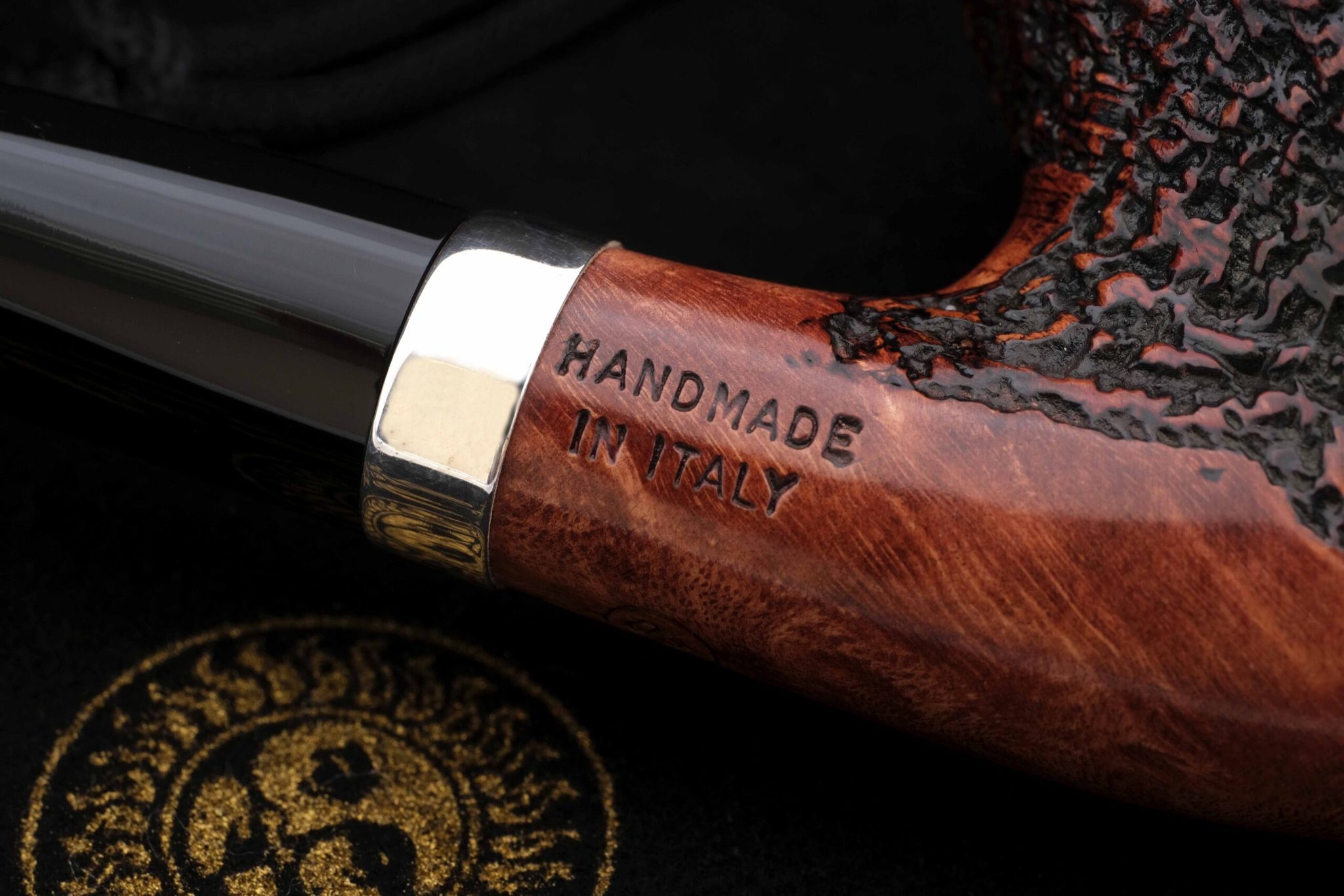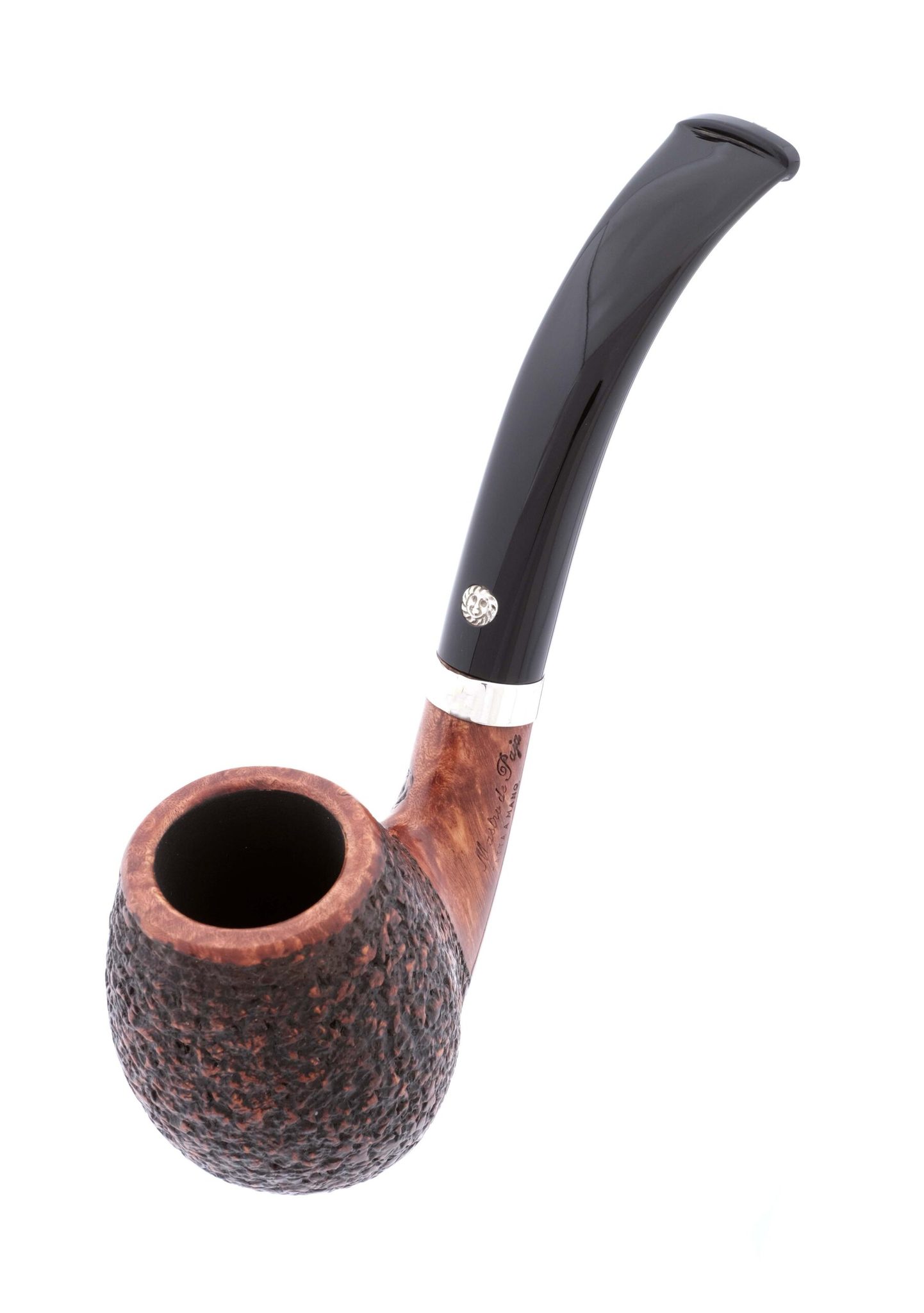 Классическая авторская курительная трубка Мастро де Пайа с грэйдом OB. Мундштук - акрил. Фигурное кольцо на чубуке - серебро 925 пробы. бесфильтровая. Вес 55 гр. Длина трубки 14 см. Диаметр чашки 41 мм., высота чашки 54 мм. Диаметр табачной камеры 20 мм., глубина 42 мм. В комплекте фирменный кисет, подарочная коробка и буклет-каталог компании Mastro de Paja. Ручная работа, единственный экземпляр.