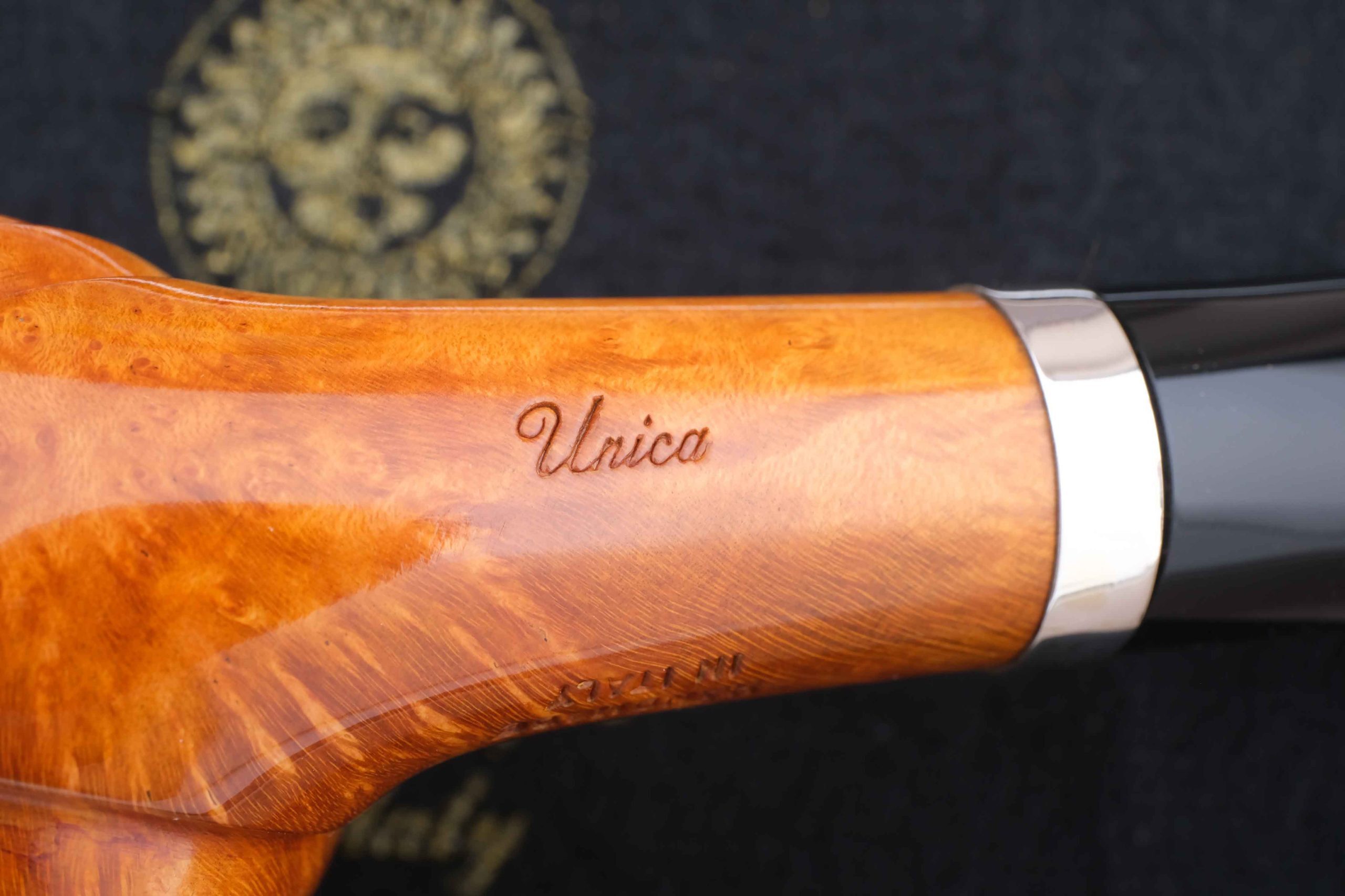 Трубка из мастерской Мастро де Пайа. Принадлежит к лимитированной серии Unica, где каждый экземпляр неповторим, имея свой индивидуальный дизайн.