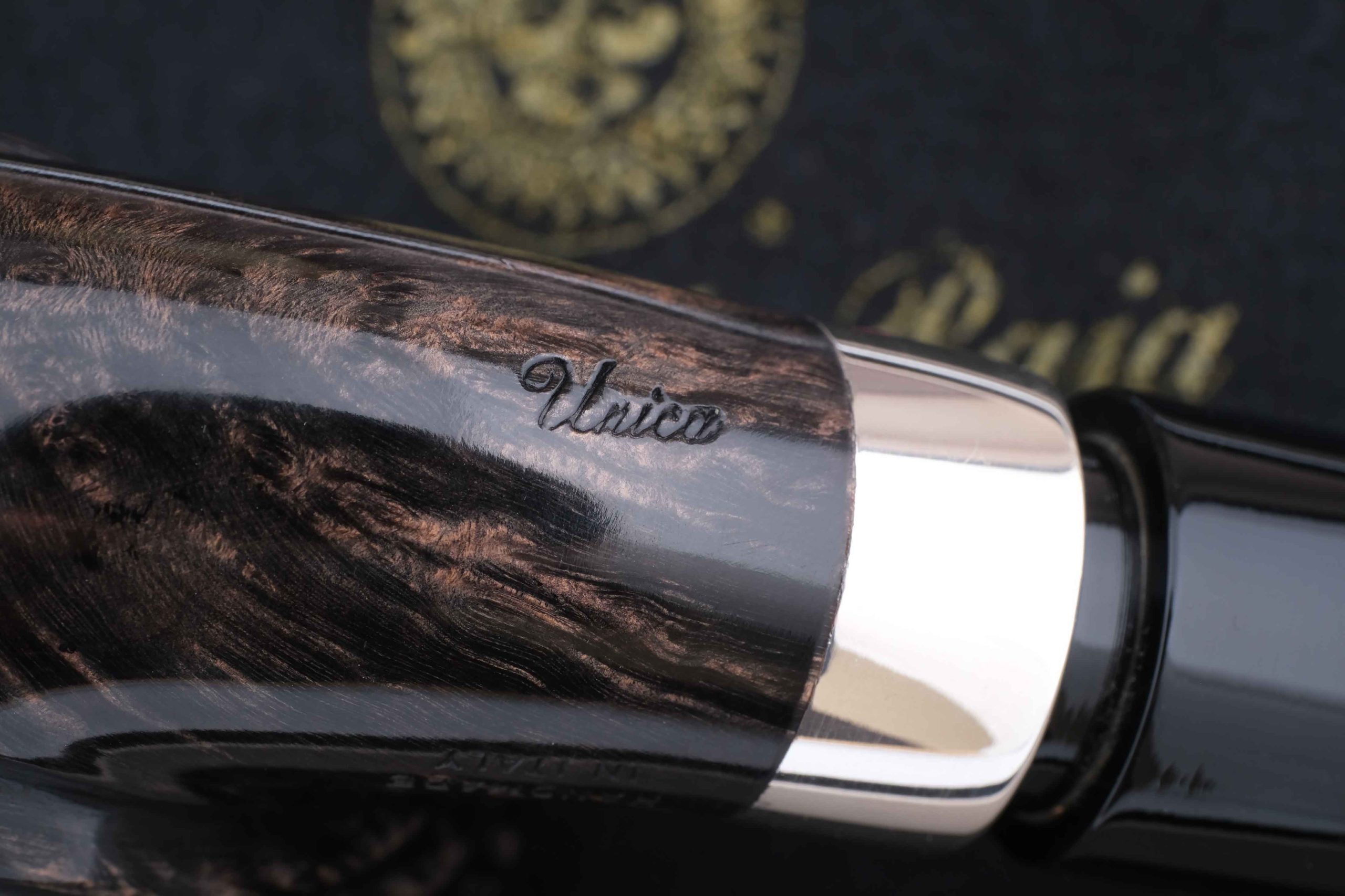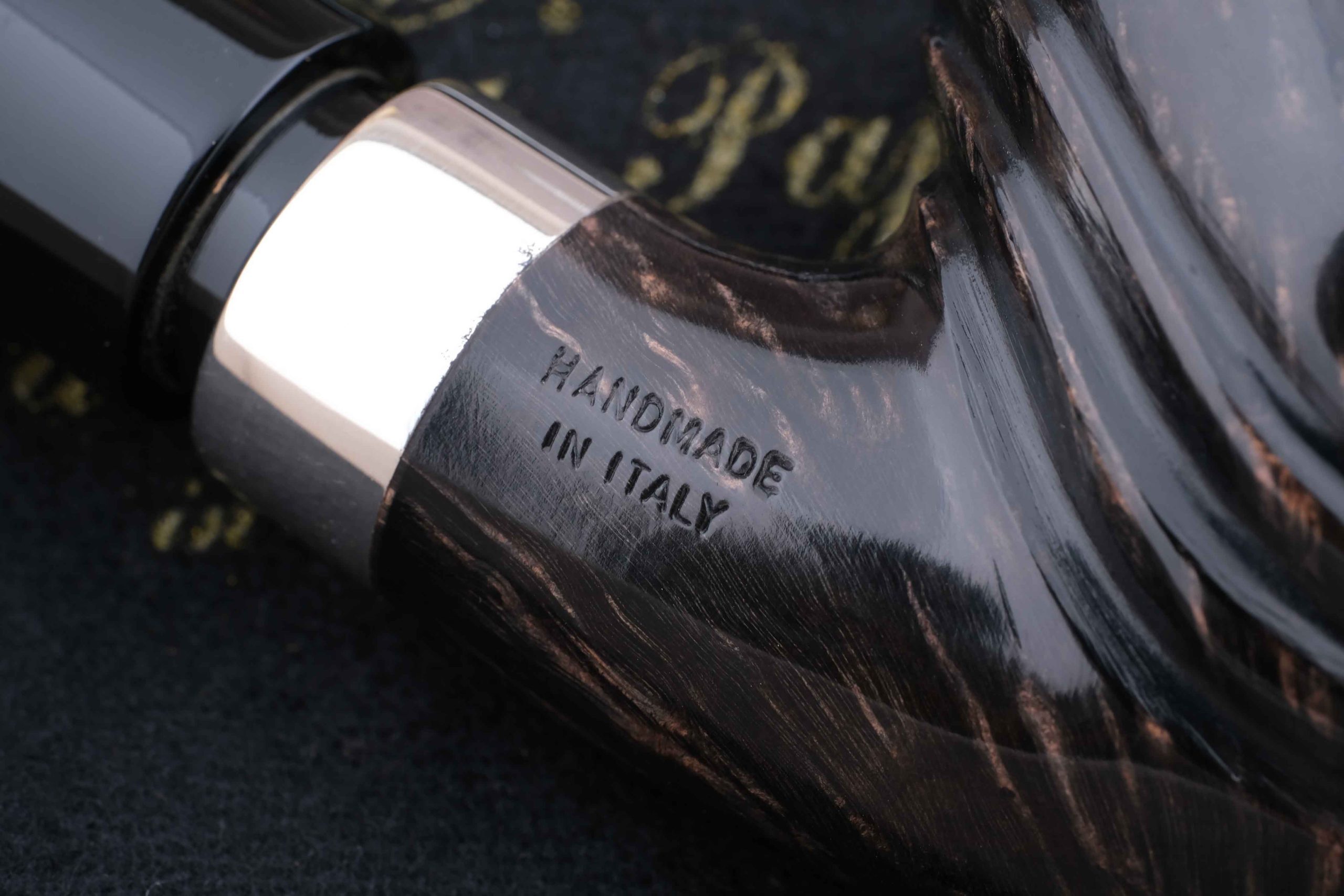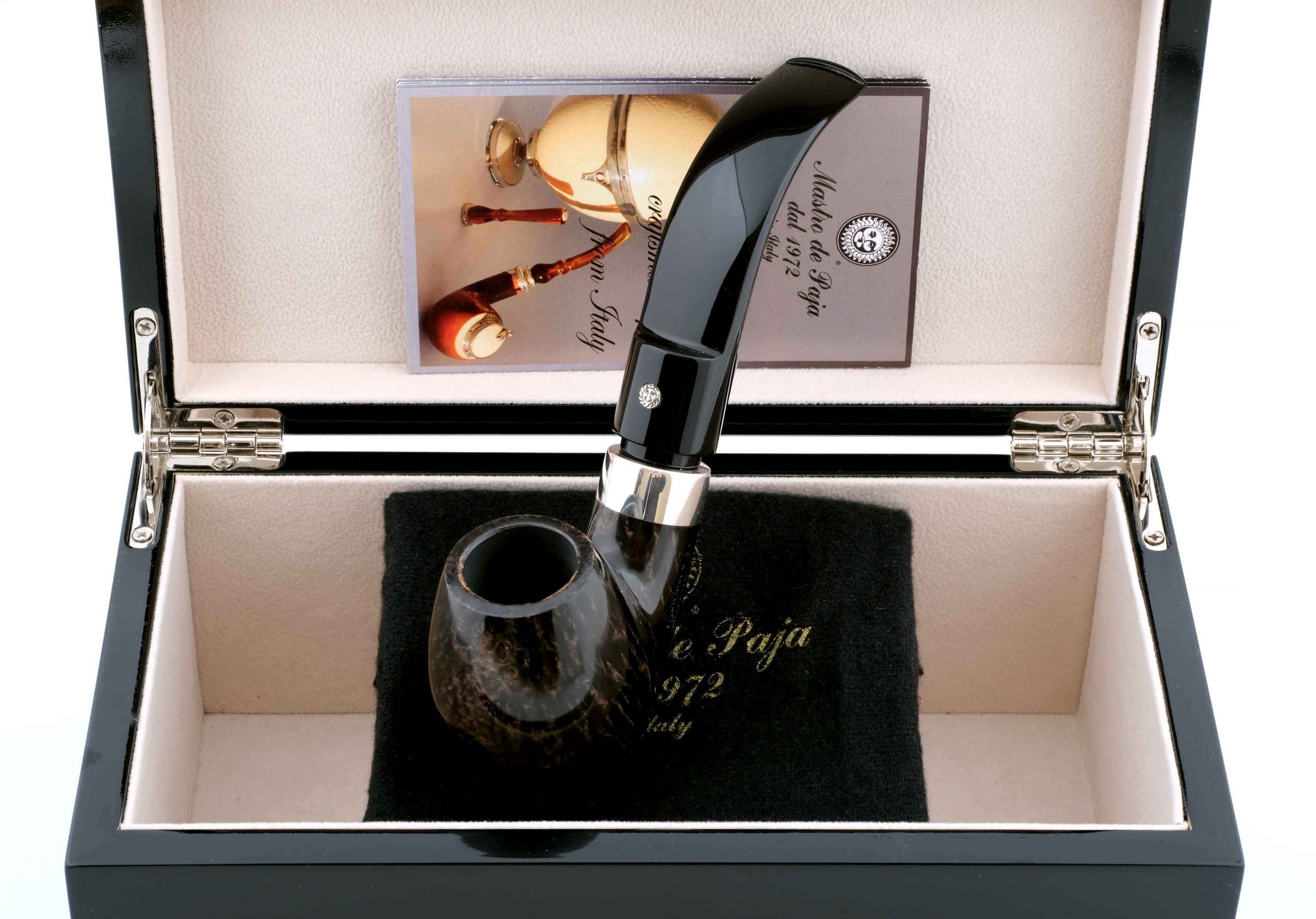 Оригинальная трубка модели Ciocco, посвященная прошедшему 50-летнему юбилею мастерской Мастро де Пайа. Принадлежит к лимитированной серии Unica, где каждый экземпляр неповторим, имея свой индивидуальный дизайн.