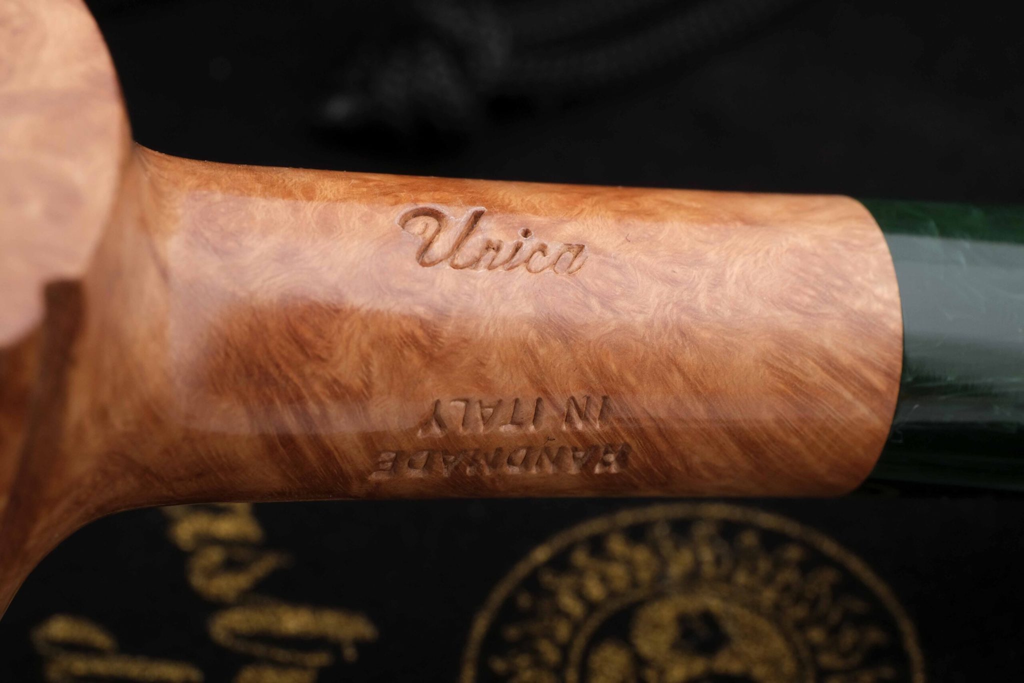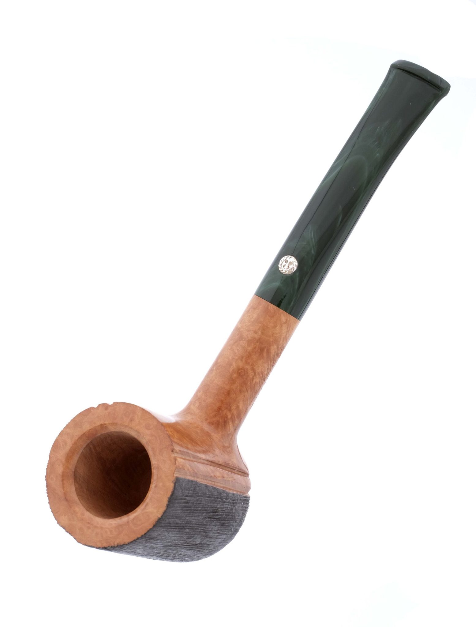 Легкая и изящная авторская курительная трубка Мастро де Пайа с декоративным рустированием типа Pettinata ("расческа", ит.). Относится к лимитированной серии Unica, где каждый экземпляр имеет свой индивидуальный дизайн. Мундштук - цветной акрил. бесфильтровая. Вес 47 гр. Длина трубки 14 см. Диаметр чашки 36 мм., высота чашки 49 мм. Диаметр табачной камеры 20 мм., глубина 34 мм. В комплекте фирменный кисет, подарочная коробка и буклет-каталог компании Mastro de Paja. Ручная работа, единственный экземпляр.