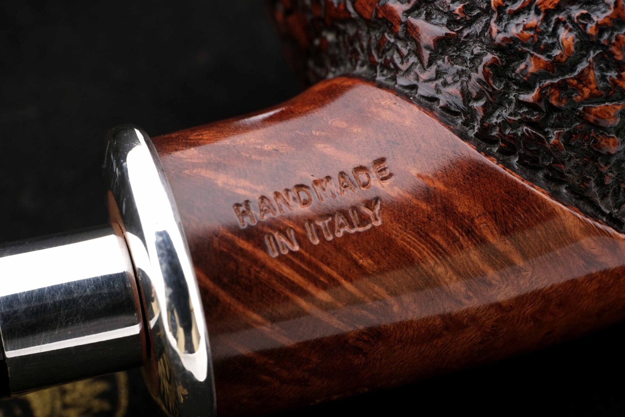 Ручная работа, единственный экземпляр. Мундштук — акрил. Двойное кольцо на чубуке и мундштуке из серебра 925 пробы. В комплекте фирменный кисет и подарочная коробка.