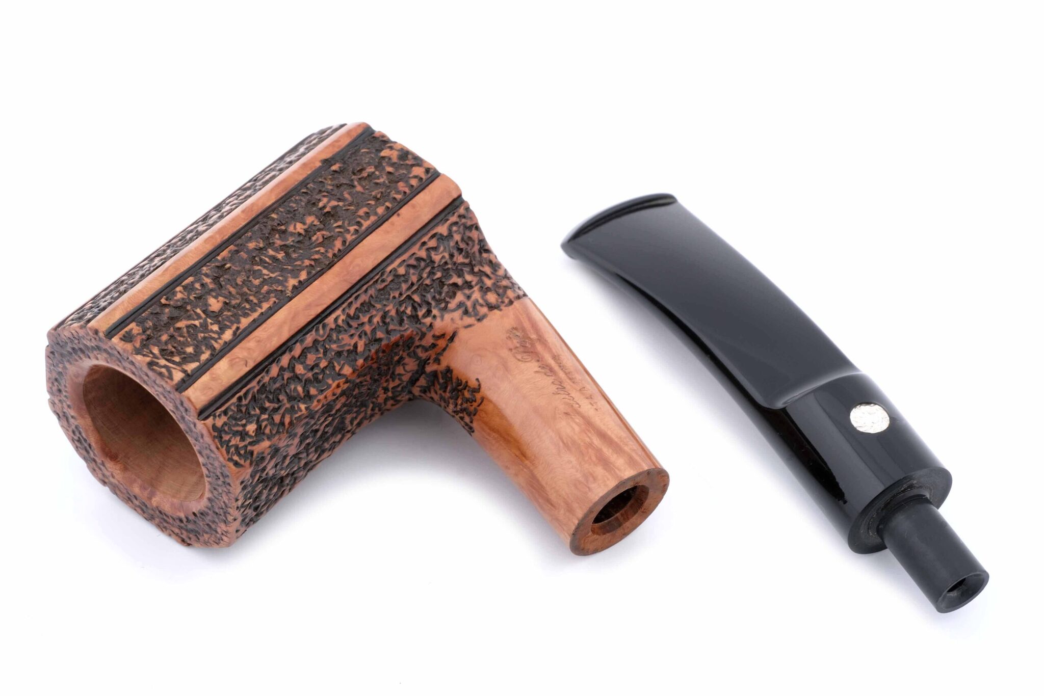 Ручная работа, единственный экземпляр. Мундштук — акрил. В комплекте фирменный кисет и подарочная коробка.