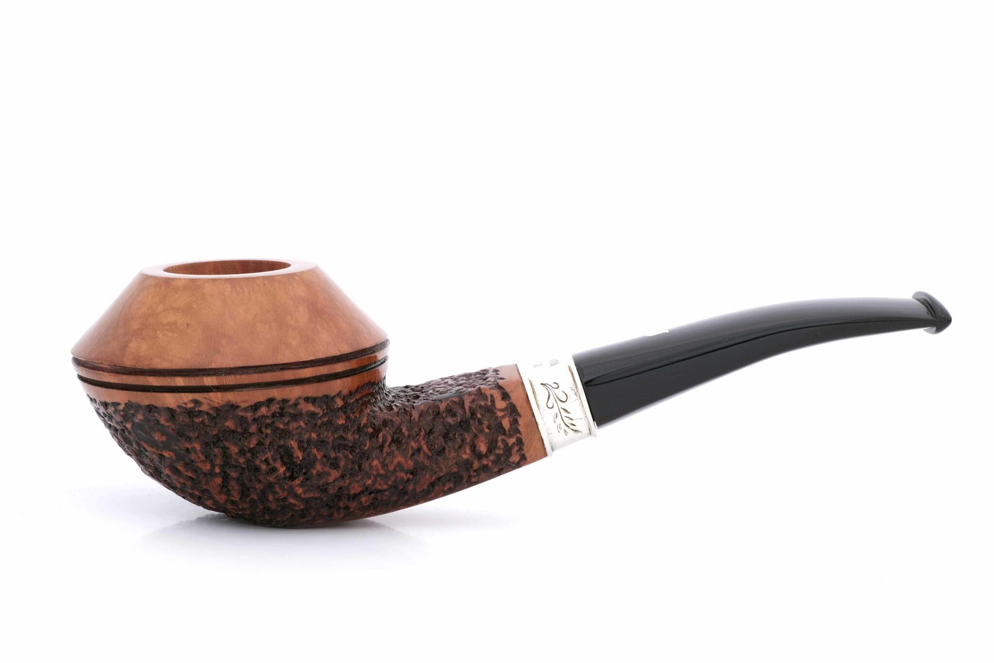 Авторская курительная трубка Ser Jacopo лимитированной серии DOMINA ("доминирующая", "царящая", ит.). В 2019 году выпущено 330 таких трубок в разных градациях (вариантах отделки), каждая с уникальным порядковым номером. Особая форма с плоской нижней частью позволяет ставить трубку на стол во время курения без использования специальных подставок. Кольцо на чубуке из серебра 925 пробы с гравировкой DOMINA 2019 и Ser Jacopo. На трубке снизу выбит девиз мастерской PER ASPERA AD ASTRA ("Через тернии к звездам", лат.), маркировки: Ser Jacopo, Hand made in Italy, градация - R1, серия Domina 2019 и уникальный порядковый номер 37. Фильтр 9 мм. Вес 94 грамма. Длина трубки 15 см. Диаметр табачной камеры 20 мм., глубина 35 мм. В комплекте подарочная шкатулка, кисет для трубки и буклеты компании Ser Jacopo. Ручная работа, единственный экземпляр.