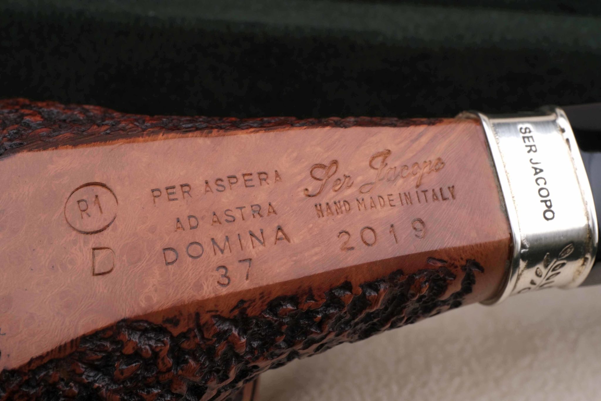 Трубка Ser Jacopo лимитированной серии DOMINA («доминирующая», «царящая», ит.). В 2019 году выпущено 330 таких трубок в разных градациях (вариантах отделки), каждая с уникальным порядковым номером.
