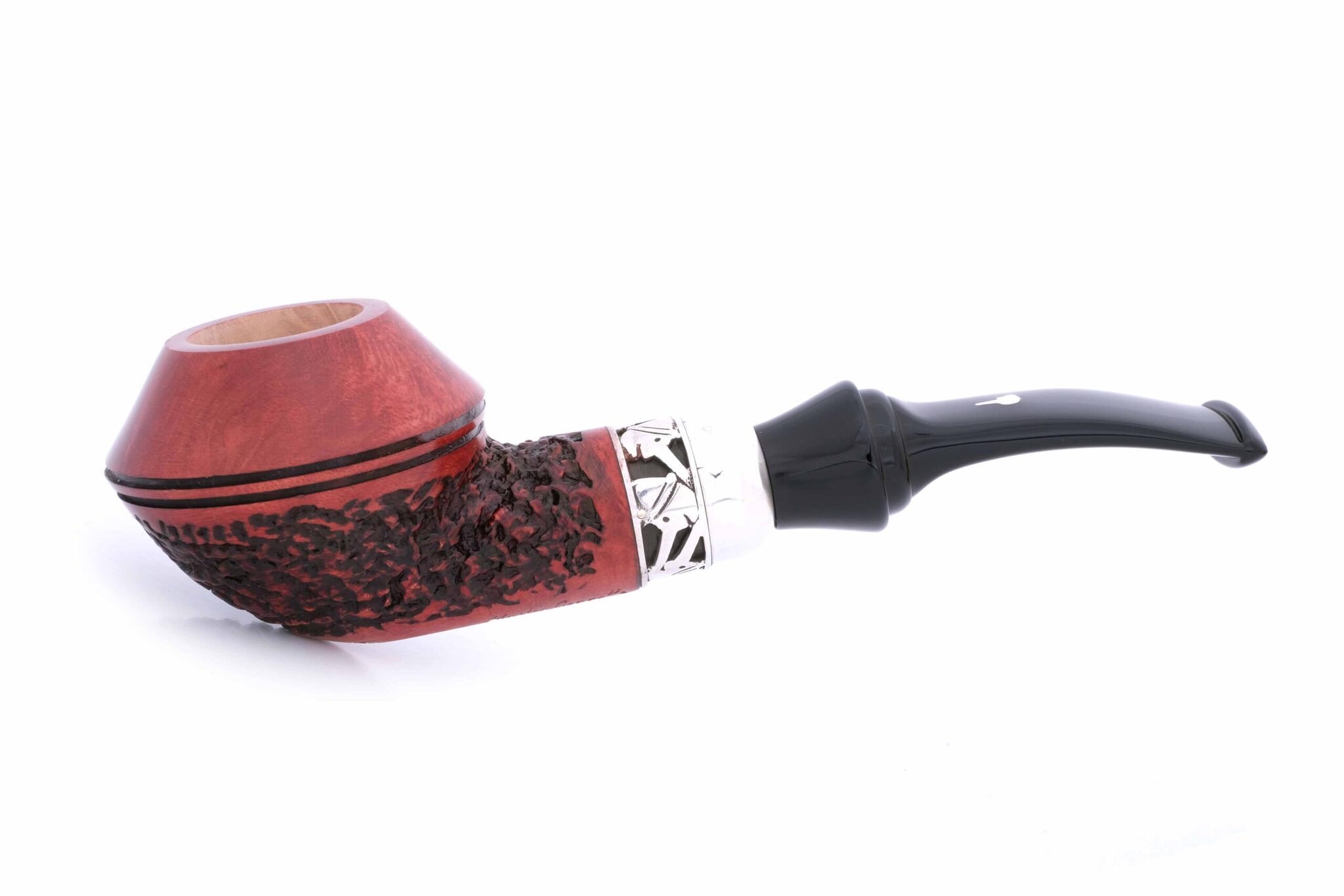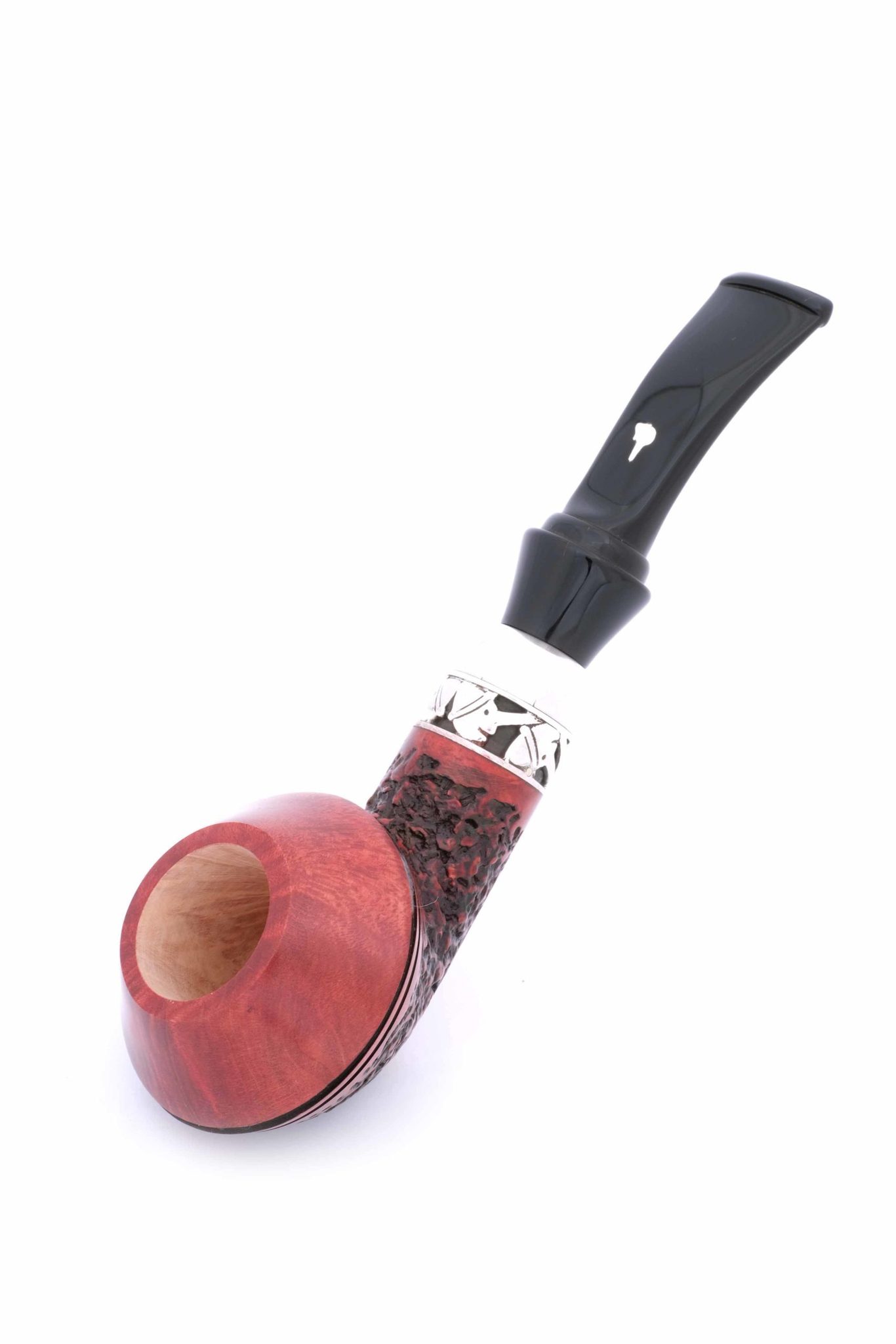 Авторская годовая трубка мастерской Ser Jacopo из серии Mastro Geppetto (Мастер Джузеппе, ит.). Серия посвящена всем итальянским резчикам по дереву в лице, пожалуй, самого известного из них - Мастера Джузеппе, создателя и отца Пиноккио из одноименной сказки Карло Коллоди. Серия оформлена в бело-желтых цветах парика, который носил Джузеппе, а вместо значка J (Jacopo) на мундштуке используется профиль Пиноккио из серебра 925 пробы. Также изображение самой известной итальянской куклы присутствует на серебряных кольцах и упаковке. Большинство трубок этой серии выполнено в технике рустирования (Rusticato), которая до сих пор выполняется ручными резцами, требует времени, силы и, конечно, мастерства резчика. Мундштук из акрила. Кольцо на чубуке и значок на мундштуке из серебра 925 пробы. Фильтр 9 мм. Вес 42 грамма. Длина трубки 13 см. Высота чашки 4 см. Диаметр табачной камеры 20 мм., глубина 31 мм. В комплекте подарочная коробка, кисет для трубки и буклет компании Ser Jacopo. Ручная работа, единственный экземпляр.