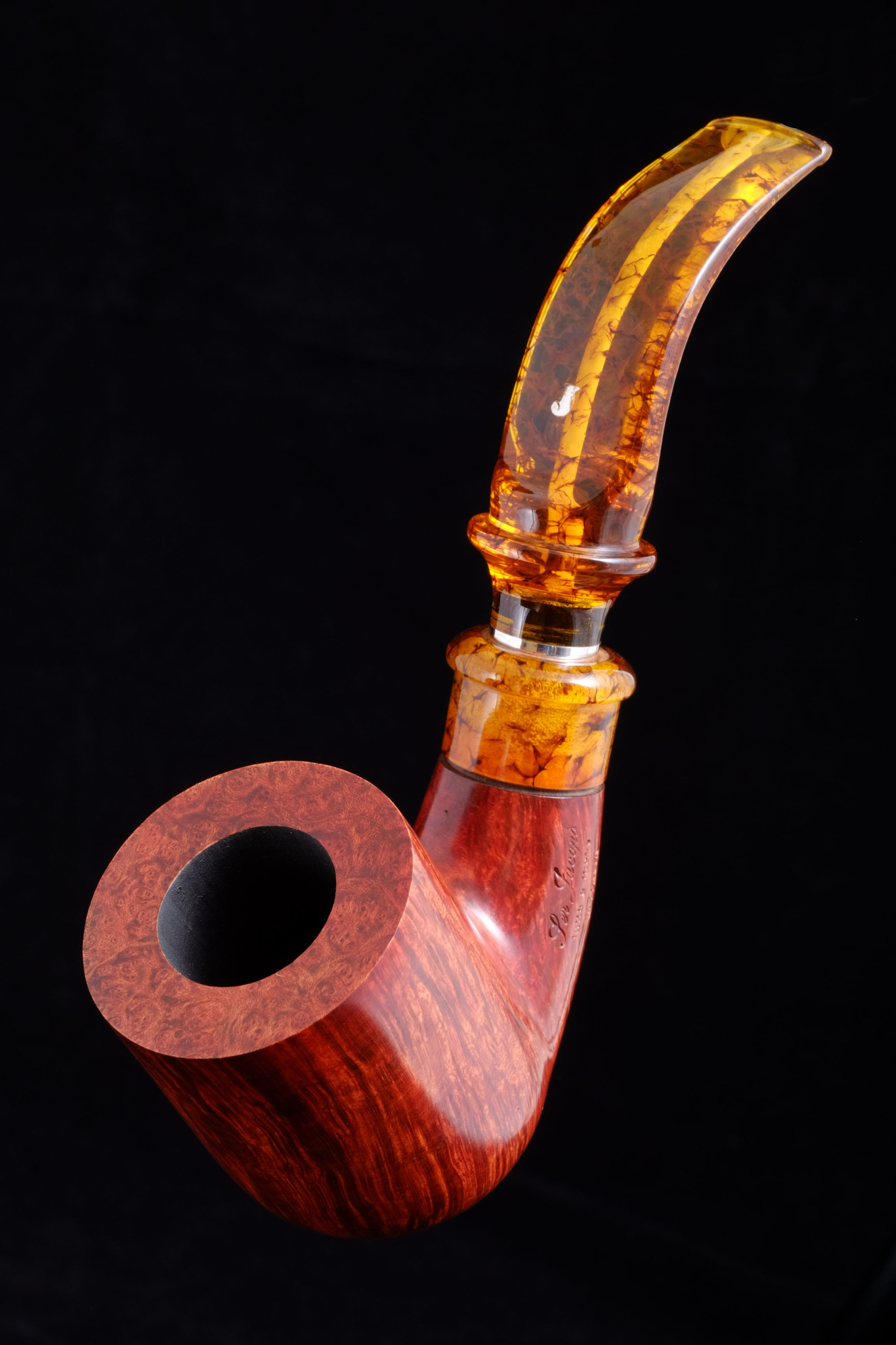 Кольцо типа Spigot на мундштуке выполнено из серебра 925 пробы. Упаковка: Кисет и фирменная коробка с буклетом о компании SER JACOPO.