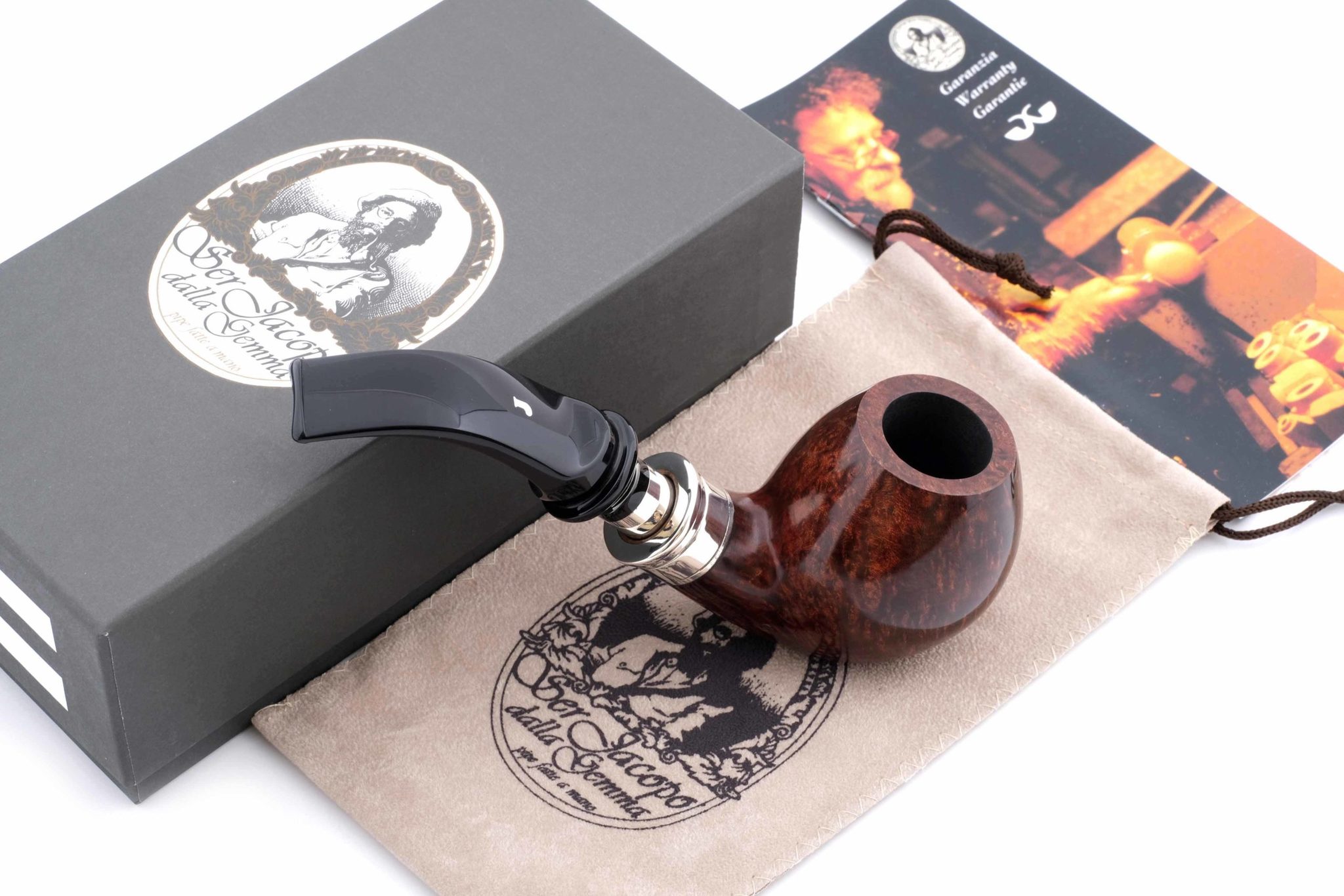 Плоская форма нижней части позволяет ставить трубку на стол во время курения без использования специальных подставок. В комплекте подарочная коробка, кисет для трубки и буклет компании Ser Jacopo.