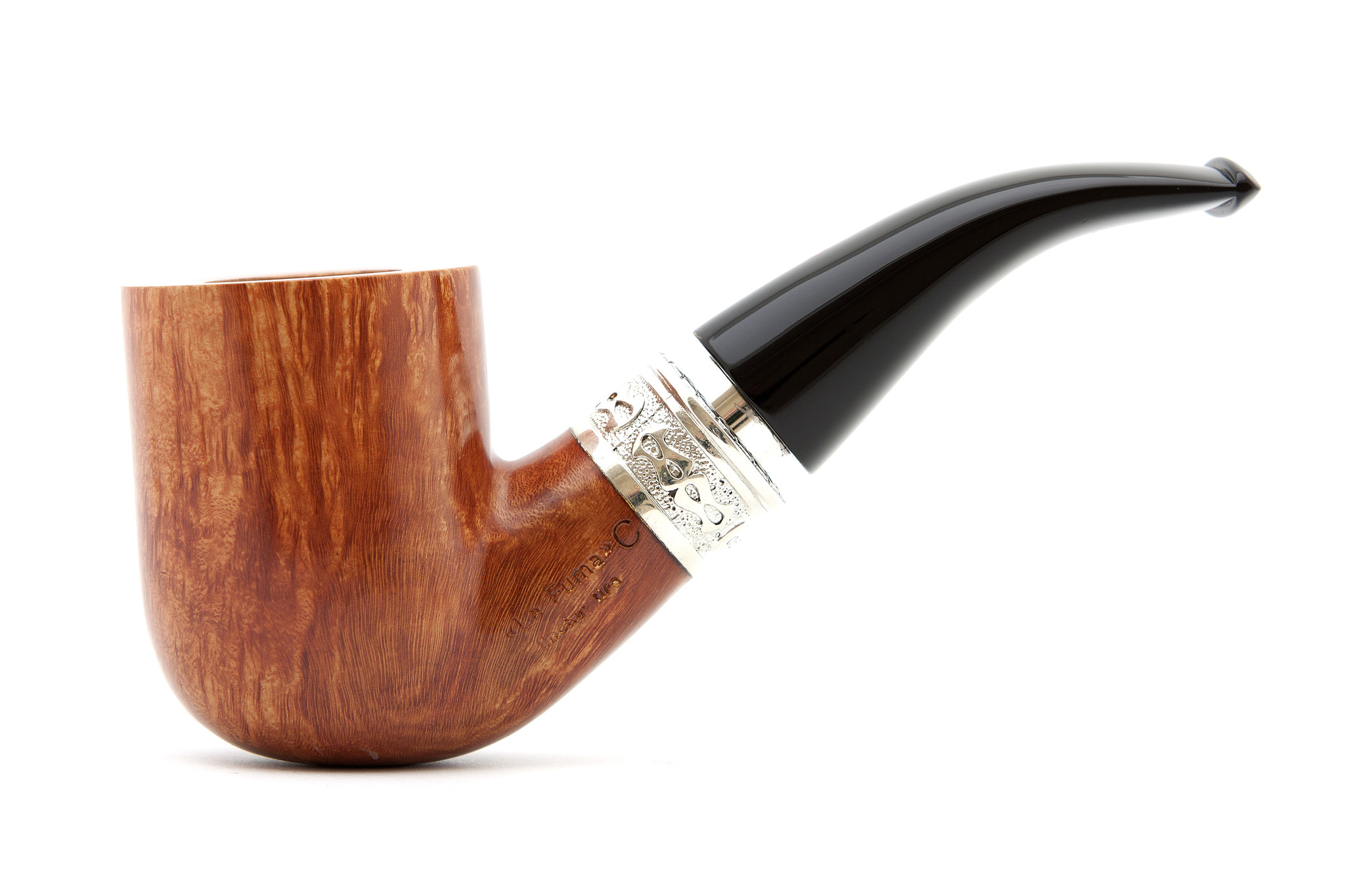 Итальянская трубка премиум класса. Мундштук с кольцом типа «спигот» из серебра 925 пробы. Кольцо на чубуке модели Delecta из серебра 925 пробы.